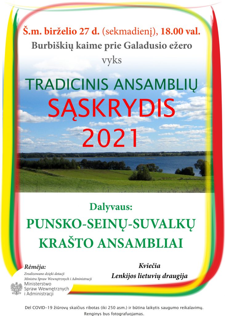 Po rocznej przerwie, w niedzielę, 27 czerwca, o godz.18.00, w Burbiszkach, leżących nad jeziorem Gaładuś, tuż przy polsko - litewskiej granicy, odbędzie się tradycyjny zlot litewskich zespołów ludowych z Sejneńszczyzny, czyli „Saskrydis".