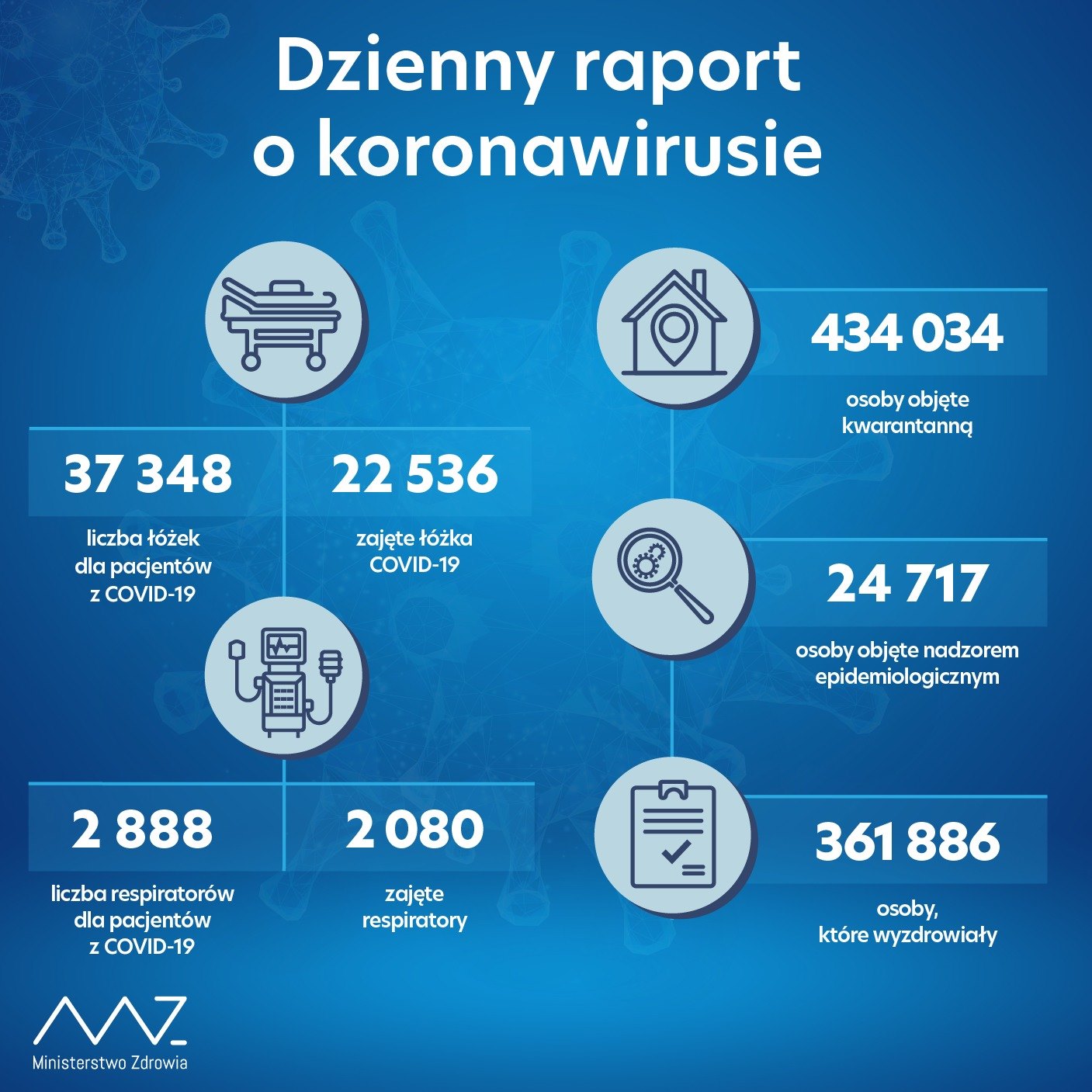 Ministerstwo Zdrowia poinformowało o 23 975 nowych i potwierdzonych przypadków zakażenia koronawirusem z województw: