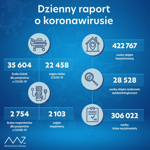 Liczba zakażonych koronawirusem w Polsce wynosi 733 788. Zmarło 10 491 osób, wyzdrowiało 306 022.
