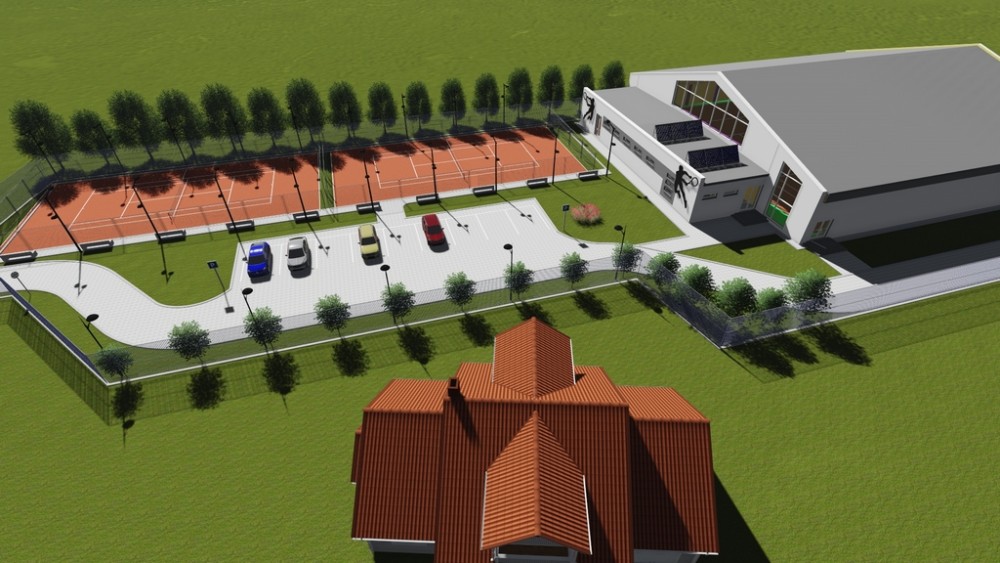 Między halą a kortami odkrytymi stanie budynek lekkiej konstrukcji z pełnym zapleczem (poniżej wizualizacja).