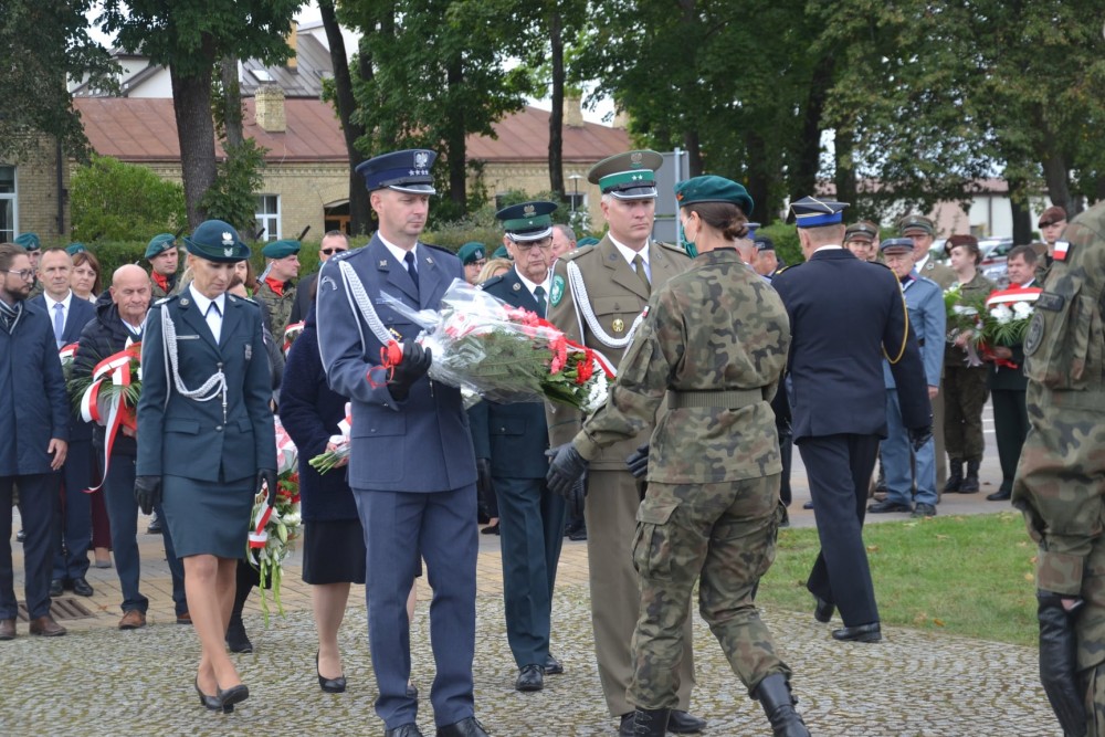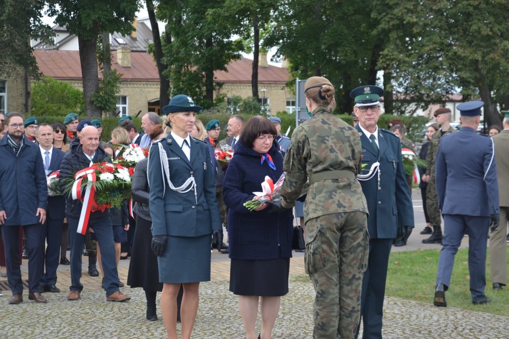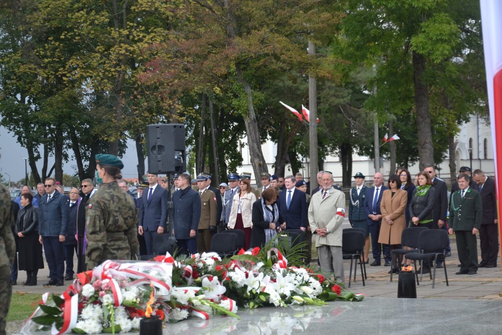 W samo południe uroczystości pod Pomnikiem Żołnierzy Września 1939 r. przy ul. Wojska Polskiego rozpoczął dźwięk syren.