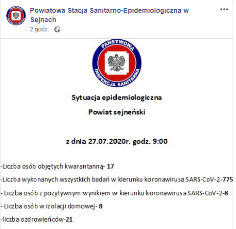 - Przypomnijmy, koronawirusa u starszego meżczyzny z powiatu sejneńskiego wykryto w ubiegłą środę, kiedy zgłosił sie na oddzial zakaźny Szpitala Wojewódzkiegow Suwałkach. Czuł się na tyle dobrze, że został wypuszczony do domu. W izolacji domowej przebywa też 7 zarażonych osób z jego rodziny.