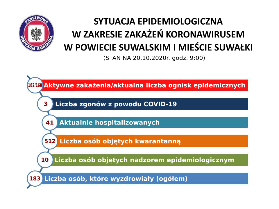 Obecnie w mieÅ›cie i powiecie mamy 182 aktywnie zakażonych (142 w SuwaÅ‚kach i 40 ma wsiach). W szpitalu leczonych jest 41 osób, a 141 przebywa w izolacji domowej (116 i 25).