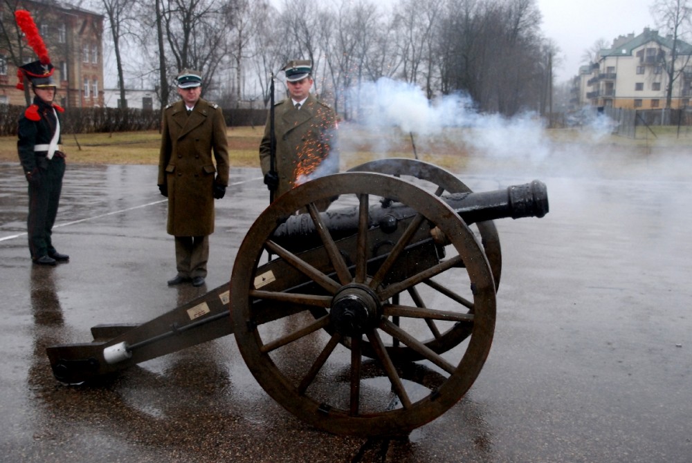 Apel zakończyła salwa armatnia oddana z zabytkowego działa i defilada żołnierz suwalskiego dywizjonu.