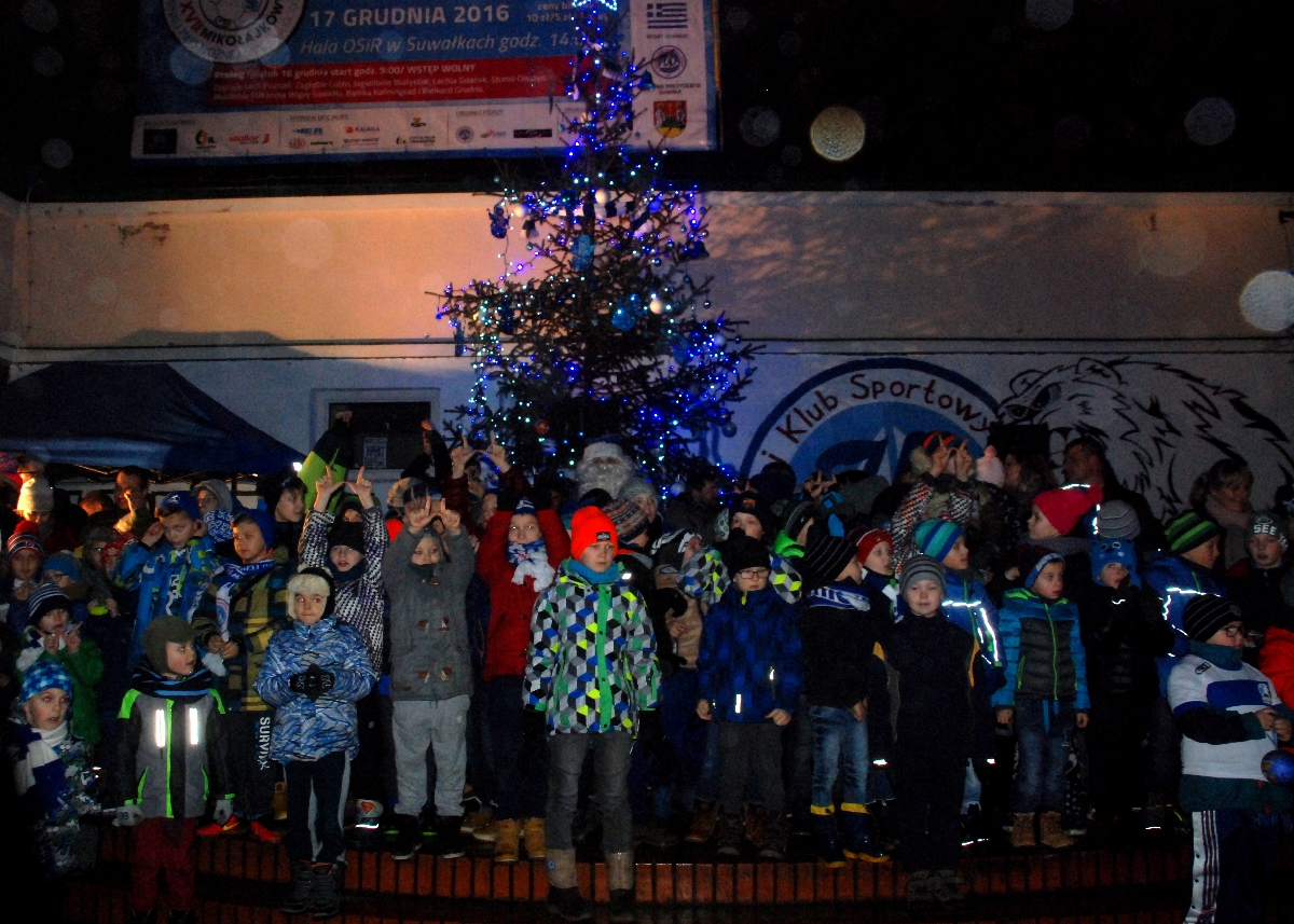 - Po raz drugi na Pasażu Grande Synthe zapłonęła niebieska Wigierska Choinka. Wysokie na 4,65 m drzewko oplotło ponad 50 m kabla z niebieskimi lampkami. Bombki przynieśli najmłodsi i najstarsi piłkarze suwalskich Wigier, klubu, który za kilka dni wkroczy w 70-rok działalności. Życzenia piłkarzom, ich rodzinom, kibicom i przechodniom, którzy na chwilę przystawali oglądajac choinkę, złożyli prezes SKS Wigry Suwałki Dariusz Mazur i prezes Akademii Piłkarskiej Wigry Suwałki Kamil Makarewicz.