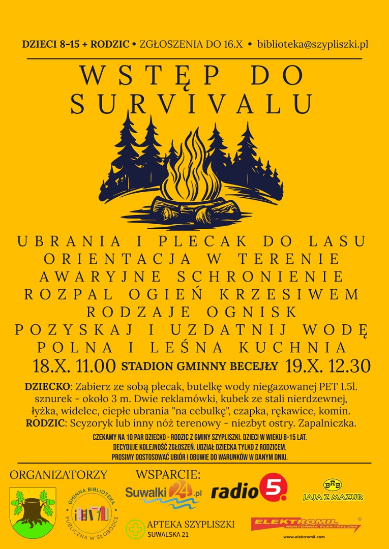 Formularz zgÅ‚oszeniowy należy wysÅ‚ać do godziny 14:00 16 października 2025 r. pocztÄ… elektronicznÄ… na adres: biblioteka@szypliszki.pl lub dostarczyć osobiÅ›cie do Gminnej Biblioteki Publicznej w SÅ‚obódce SÅ‚obódka 9 16-411 Szypliszki.