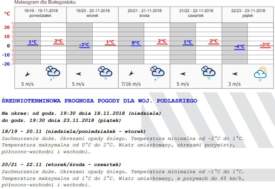Ostrzeżenie o możliwych w sobotę opadach marznącej mżawki powodującej gołoledź wydało Biuro Prognoz Meteorologicznych IMGW-PIB w Białymstoku.