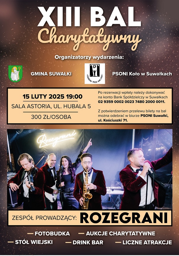 W tym roku Bal odbÄ™dzie siÄ™ 15 lutego. W programie – oprócz zabawy z zespoÅ‚em Rozegrani – liczne licytacje, fotobudka i wiele innych atrakcji.