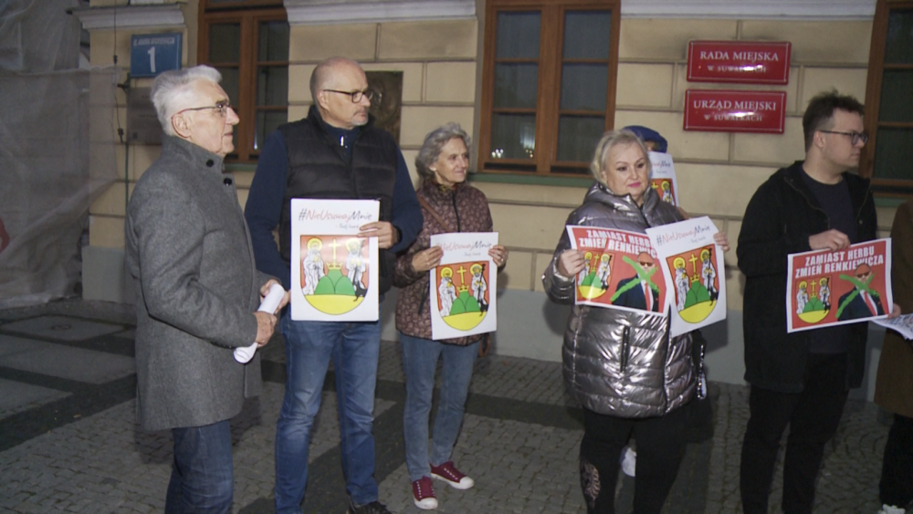 „Zamiast herbu zmień Renkiewicza” – tak brzmiało jedno z haseł protestu, który odbył się we wtorek po południu w Suwałkach. Grupka młodych ludzi ze stowarzyszenia „Głos Suwałk” protestowała przeciwko zmianie herbu Suwałk oraz przeciwko zakupowi insygniów władzy dla prezydenta miasta i przewodniczącego rady miasta.