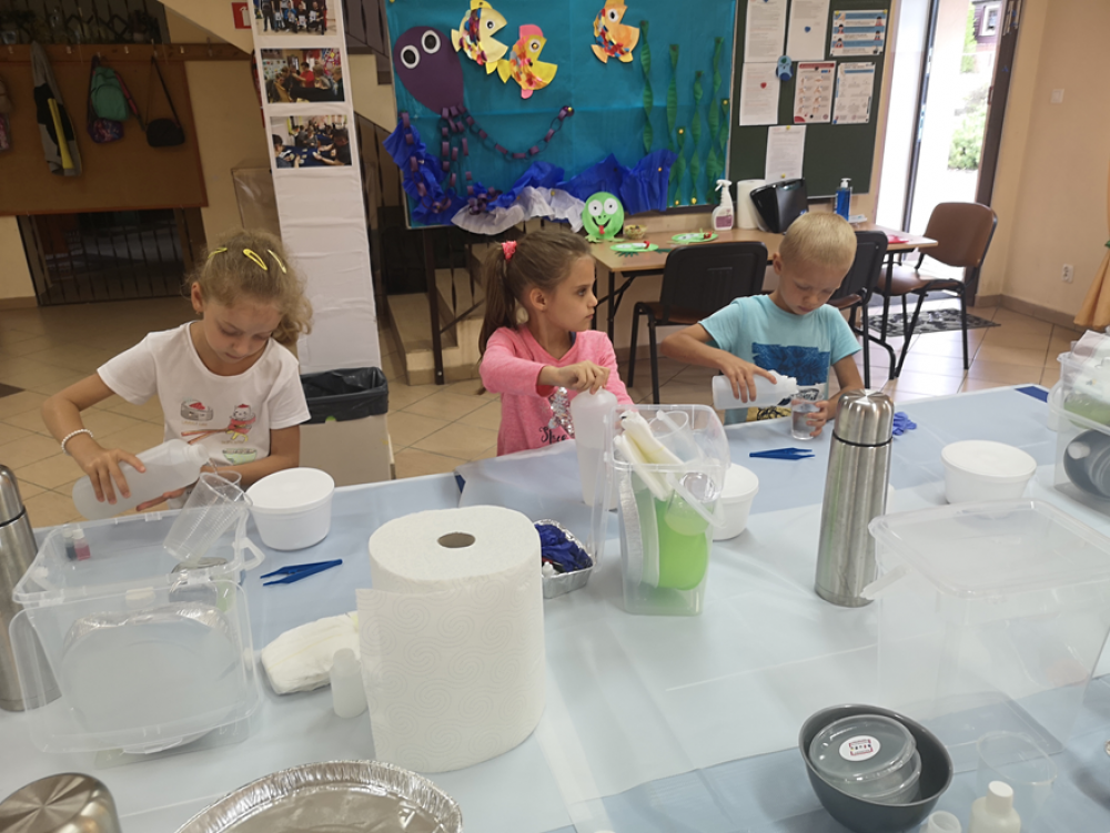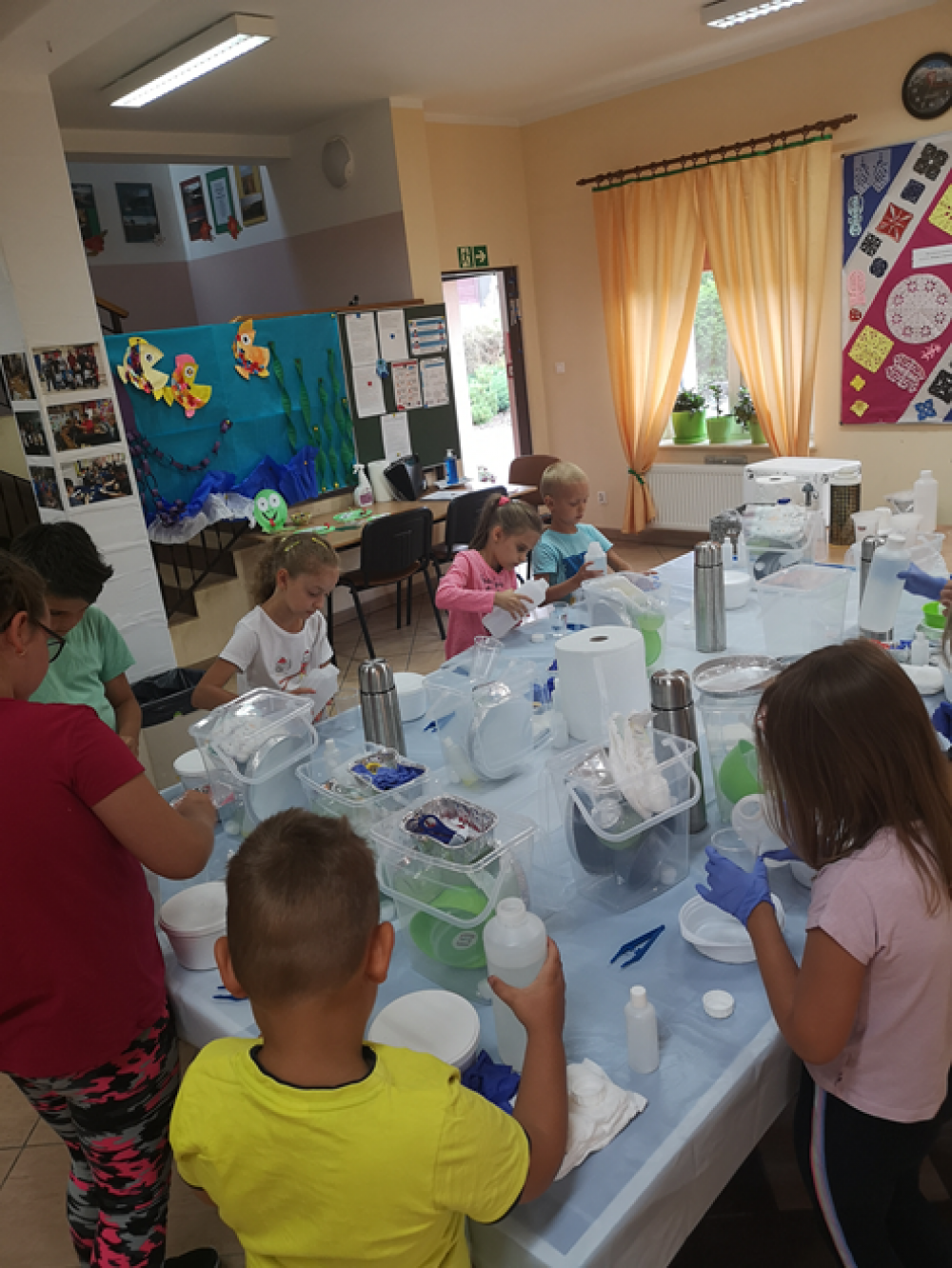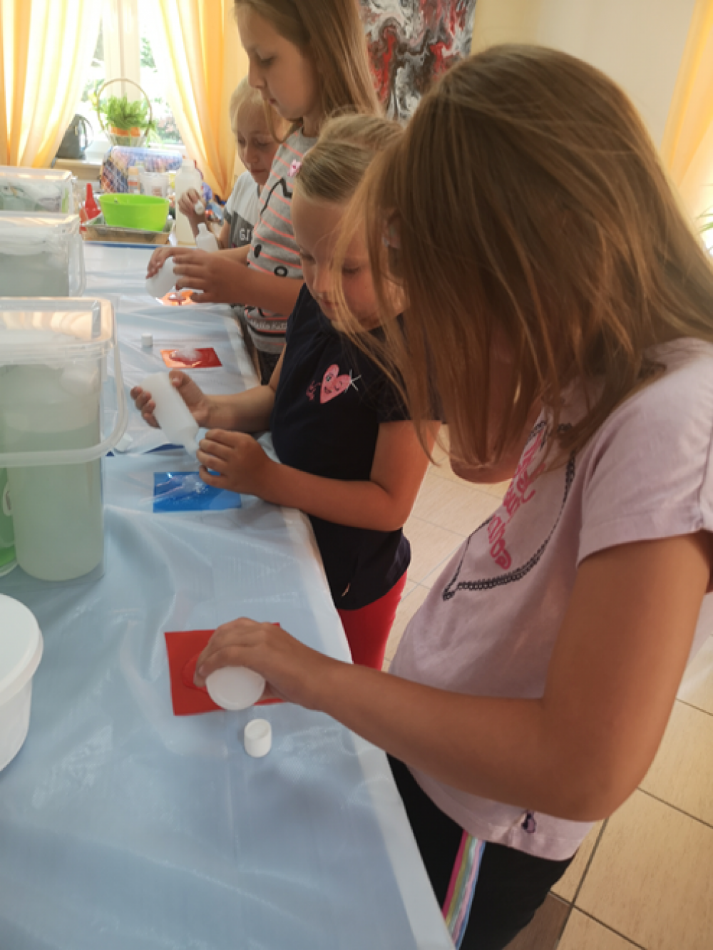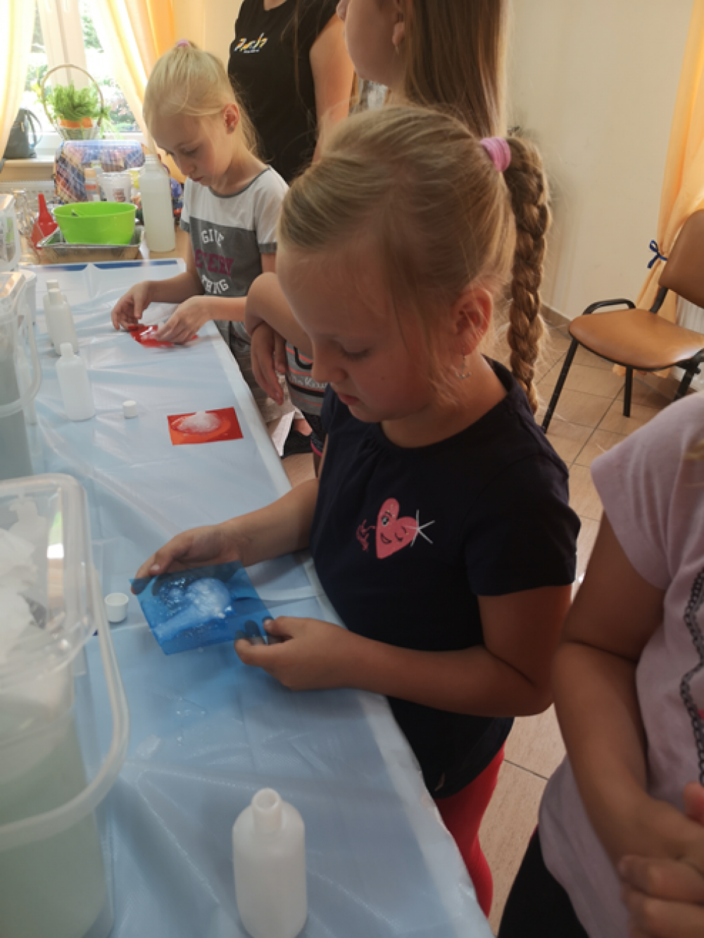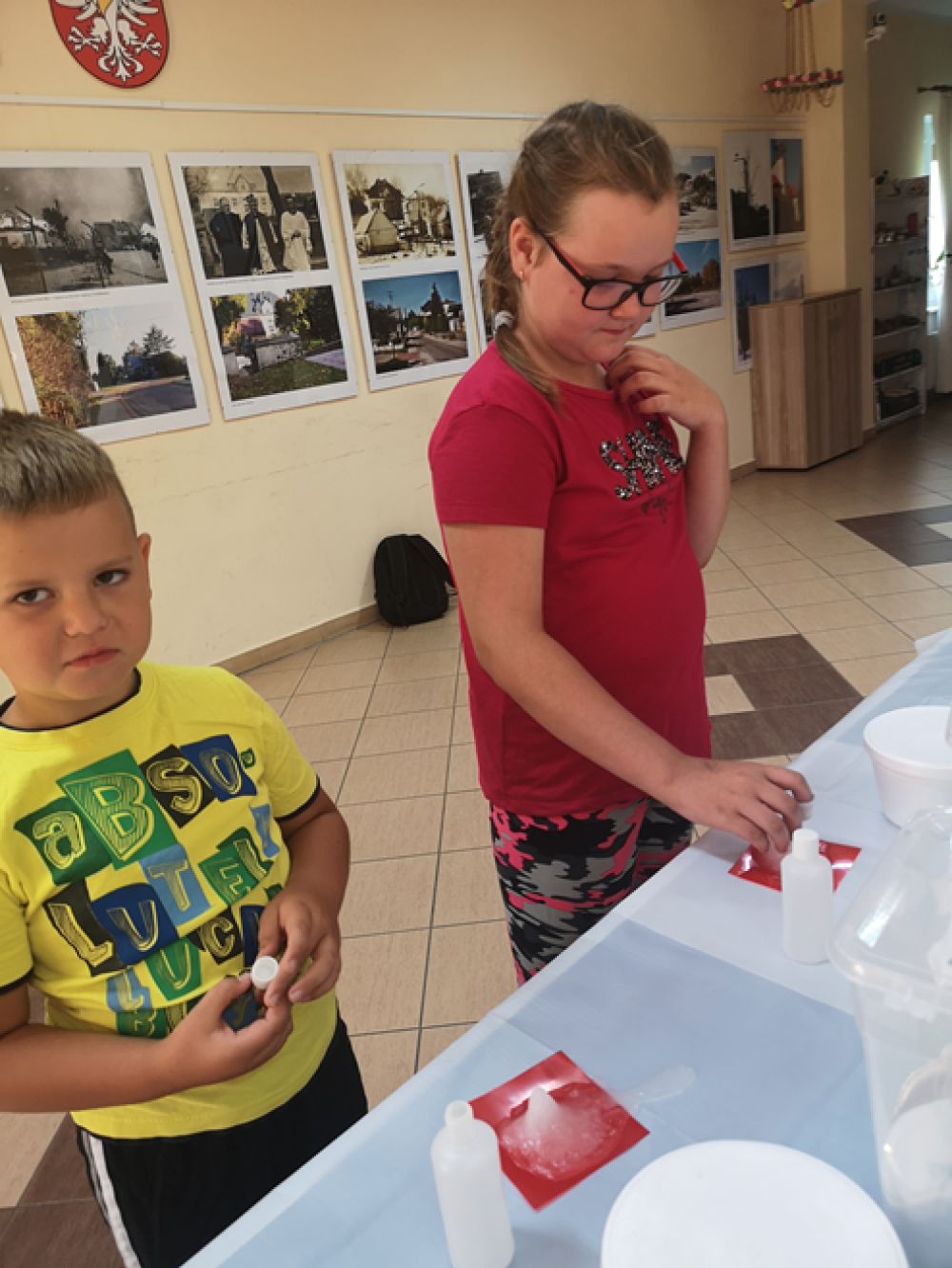 Eksperymenty z suchym lodem miały miejsce w Świetlicy Gminnej w Wiżajnach. Za kilka dni dzieci dowiedzą się, jak działają prąd i magnes oraz będą robić wielkie bańki i slime-y.