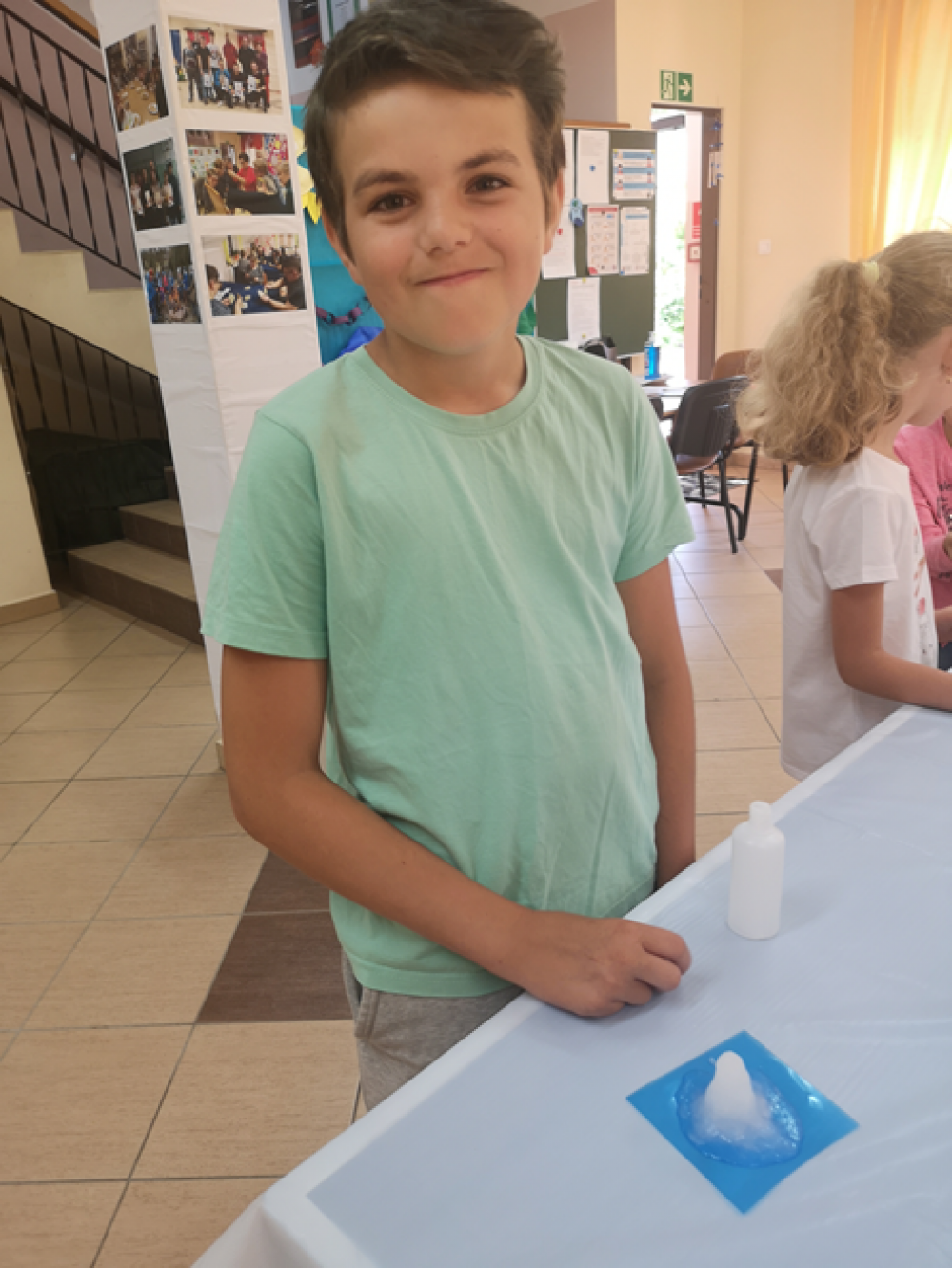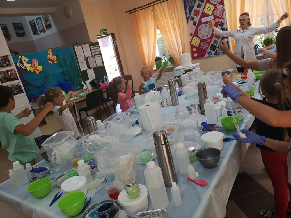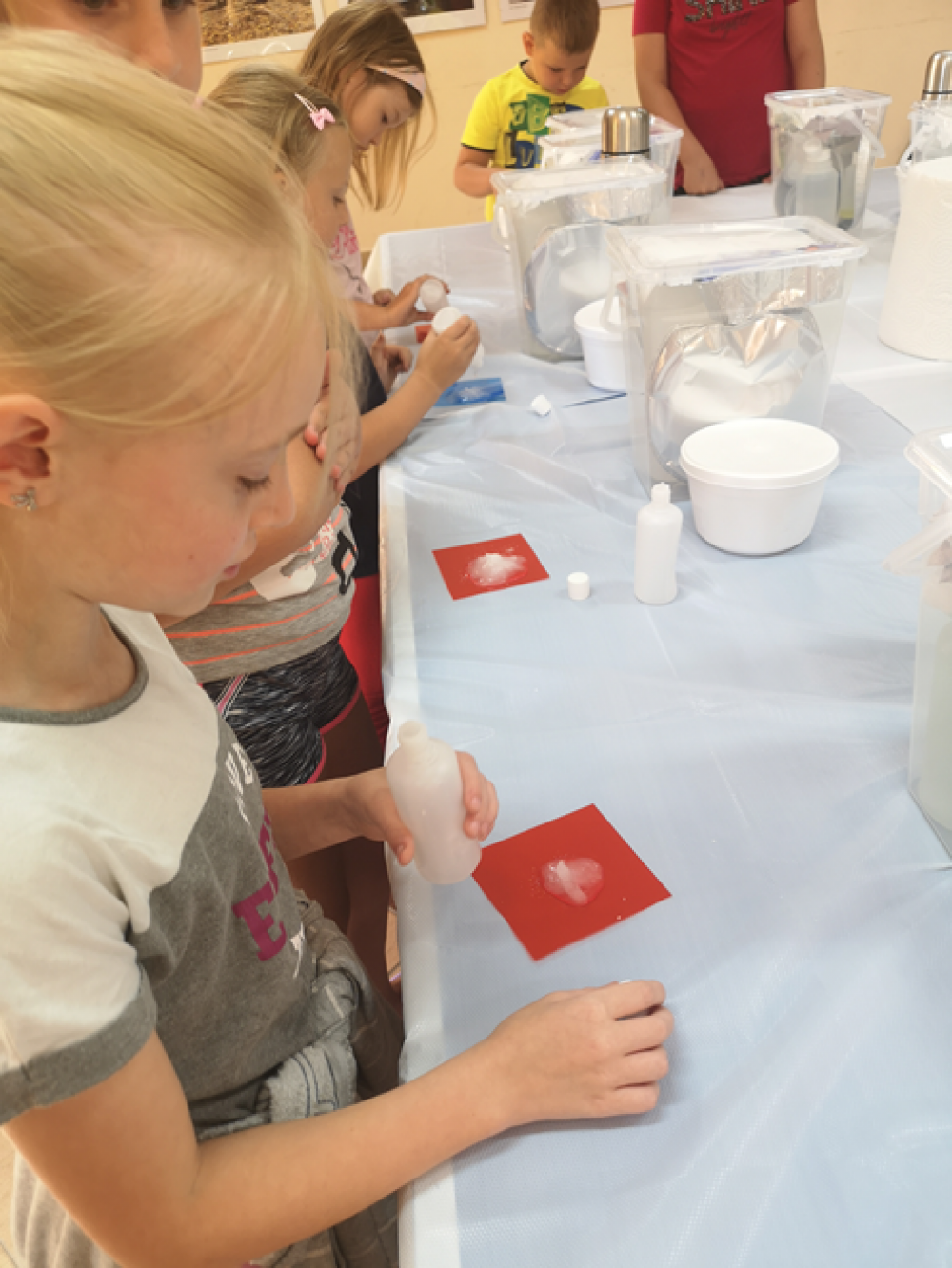 Najpierw płonąca dłoń, teraz suchy lód. Dzieci z gminy Wiżajny chętnie uczestniczą w eksperymentach przygotowanych przez Kwadrat - kursy przygotowujące.