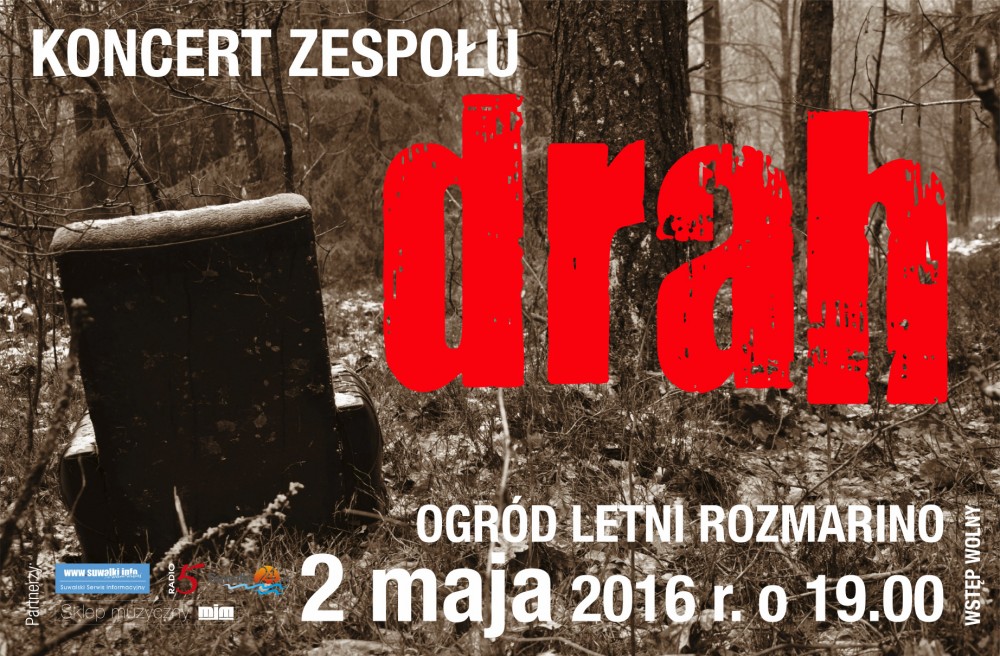 W poniedziałek - 2 maja o godz. 19.00 w Ogrodzie Letnim Rozmarino wystąpi zespół DRAH. To koktajl energetyczny z czeluści mordoru, trzy instrumenty, bose stopy i hard sound z korzeniami zapuszczonymi w klimatach hardcore punk i halurock. W trakcie swojej działalności DRAH koncertował m.in. z: ARMIĄ, DEZERTEREM.