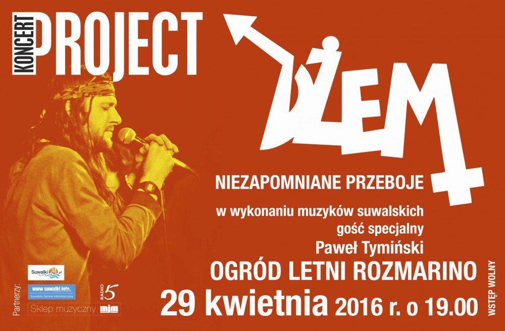 W piątek – 29 kwietnia o godz. 19.00 zapraszamy na Project Dżem. To koncert niezapomnianych przebojów zespołu Dżem w wykonaniu suwalskich muzyków z gościem specjalnym Pawłem Tymińskim.
