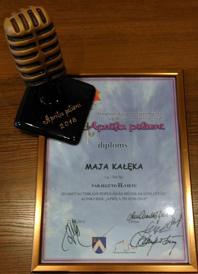 Dziewięcioletnia Maja Kałęka z suwalskiego studia wokalnego Beciaki zajęła drugie miejsce na Międzynarodowym Konkursie Piosenki „Aprilia Pilieni” w Bauska na Łotwie. Dziewczynka zaśpiewała piosenkę „Kaczka dziwaczka” z Akademii Pana Kleksa i zdobyła 58 na 60 możliwych punktów.