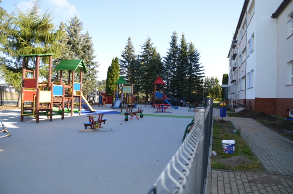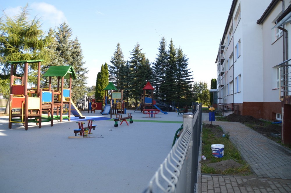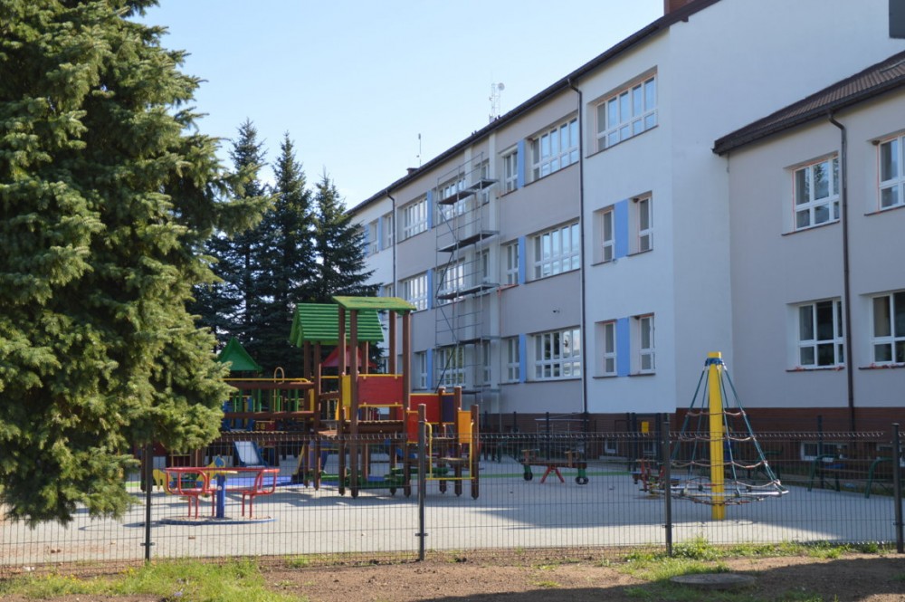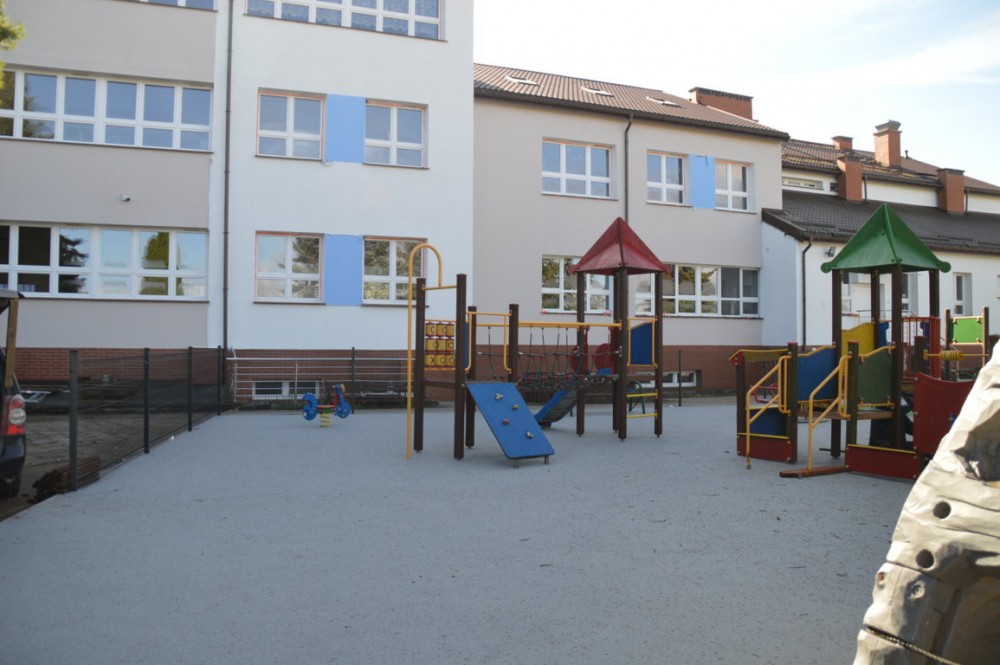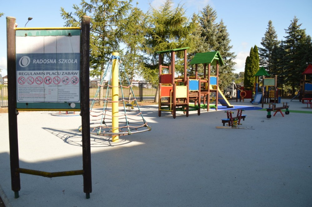 Przy sali gimnastycznej powstał nowoczesny, duży i bezpieczny plac zabaw, dostosowany do osób niepełnosprawnych. Mogą korzystać z niego także dzieci poruszające się na wózkach inwalidzkich.