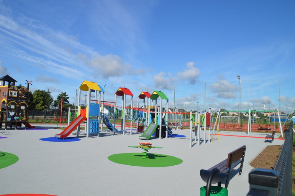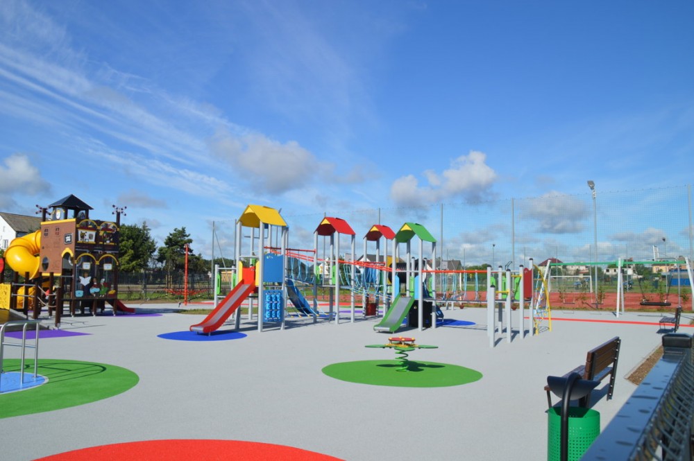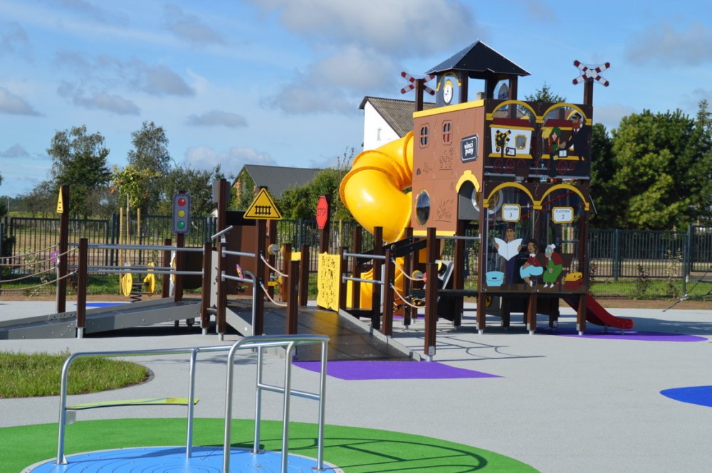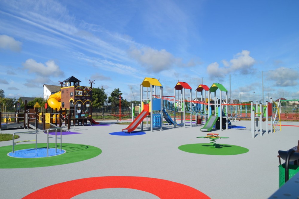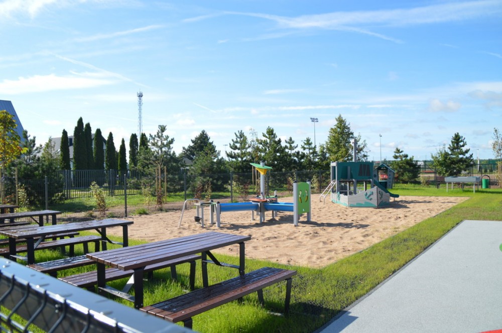 Przy sali gimnastycznej powstał nowoczesny, duży i bezpieczny plac zabaw, dostosowany do osób niepełnosprawnych. Mogą korzystać z niego także dzieci poruszające się na wózkach inwalidzkich.