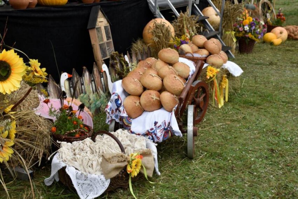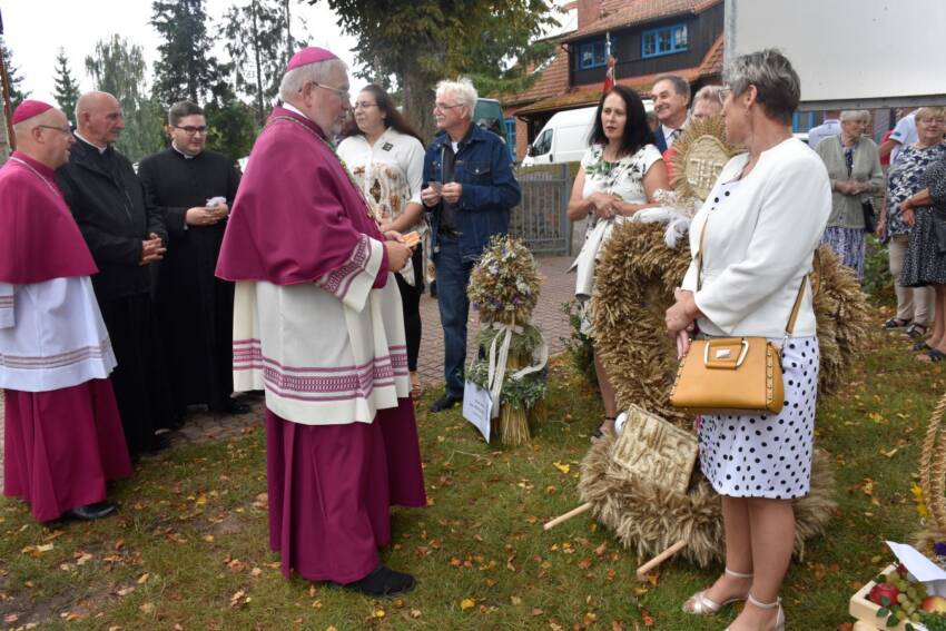 Na koniec Mszy Å›w. bp Jerzy Mazur pobÅ‚ogosÅ‚awiÅ‚ chleby, którymi po Eucharystii podzielili siÄ™ wszyscy uczestnicy dożynek, aby wspólnie dziÄ™kować za owoce ciężkiej pracy na roli.