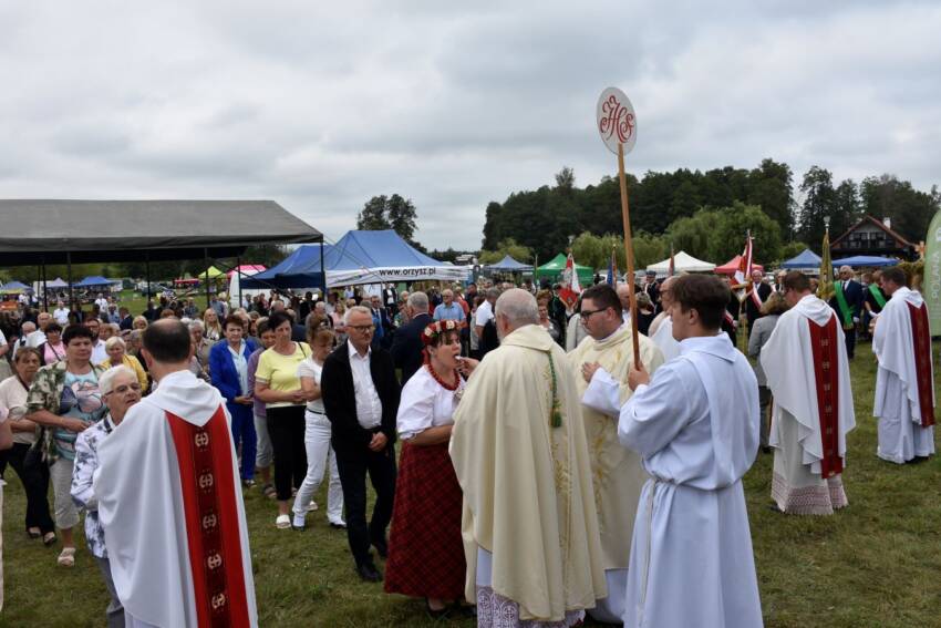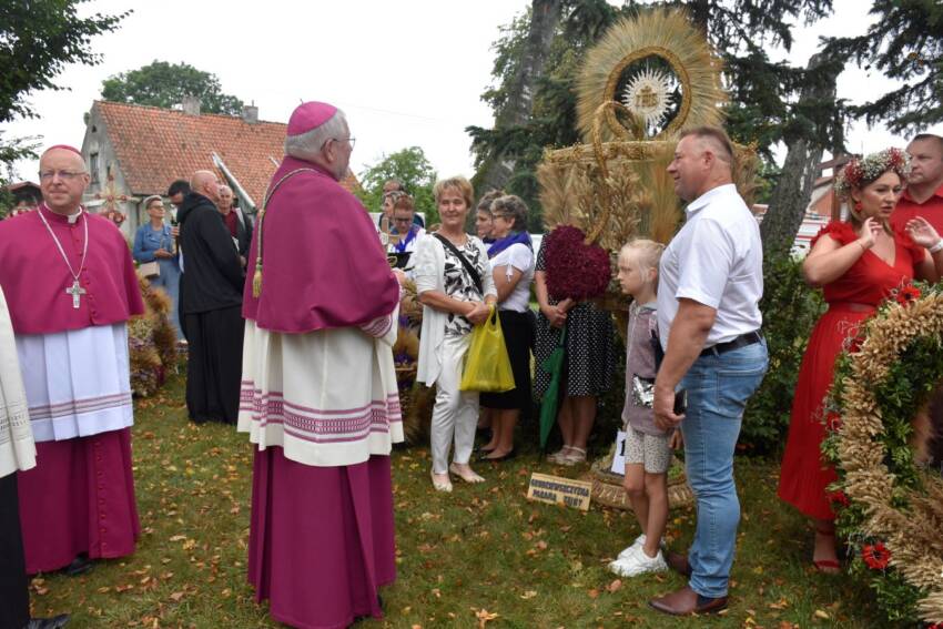 - UroczystoÅ›ci dożynkowe, dla nas, ludzi wierzÄ…cych, nie miaÅ‚yby żadnego sensu, gdyby nie byÅ‚y ukierunkowane na nasze dziÄ™kczynienie wobec Stwórcy – mówiÅ‚ w powitaniu ks. kan. Szewczyk. Na poczÄ…tku Mszy Å›w. starostowie dożynek przywitali Biskupa EÅ‚ckiego chlebem, owocem tegorocznych zbiorów.