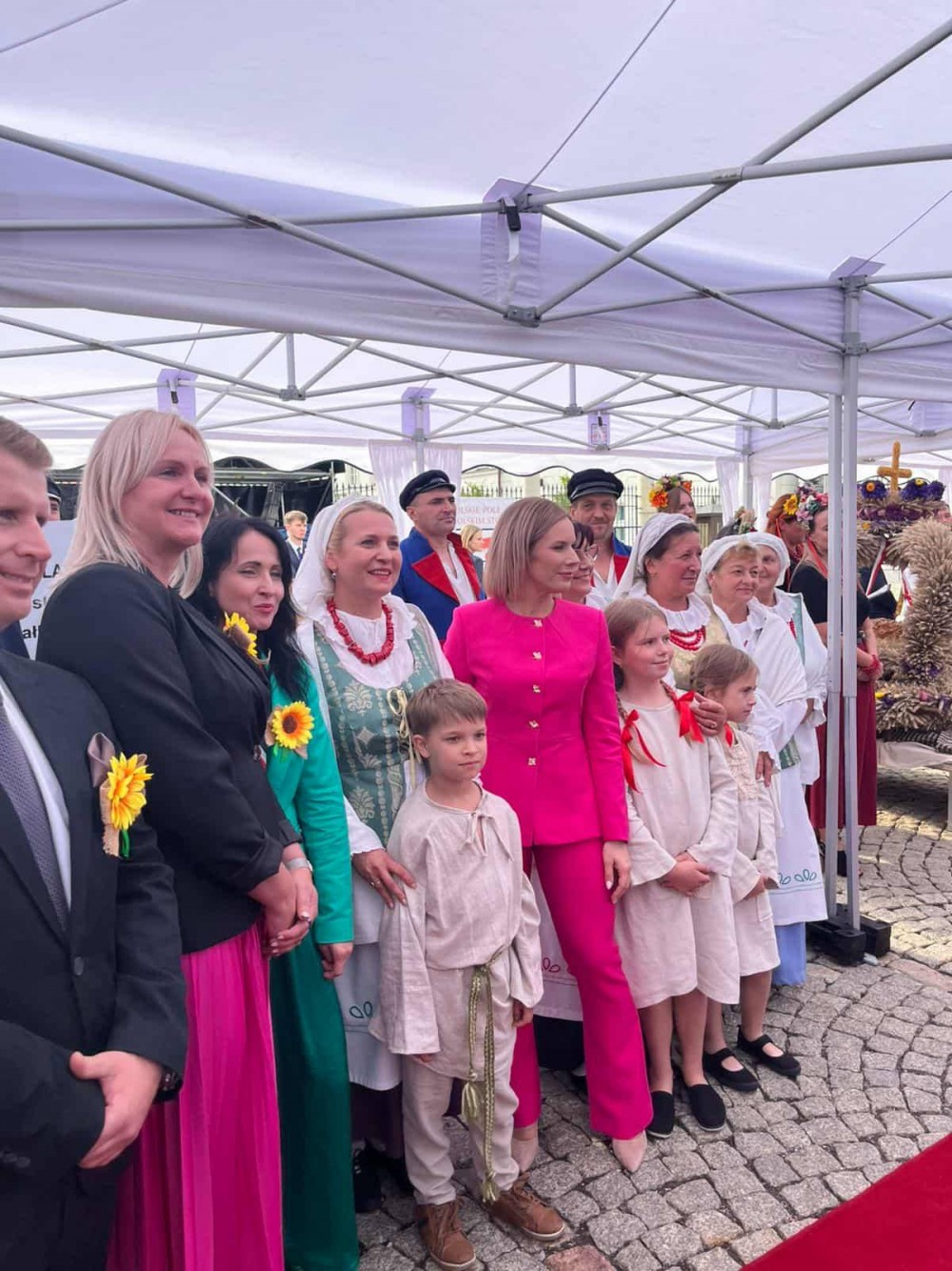 - Z uznaniem i zachwytem spoglądałam na te wieńcowe arcydzieła. Wiem, że taka praca zajmuje długie miesiące. Najpierw siewy, później zbiory, następnie tygodnie wyplatania warkoczy – to naprawdę misterna robota. Ale także piękna i budująca wspólnotę. W tysiącach polskich wsi - w Waszych małych ojczyznach. Serdecznie za to dziękuję – mówiła w sobotę do grup wieńcowych Małżonka Prezydenta RP.