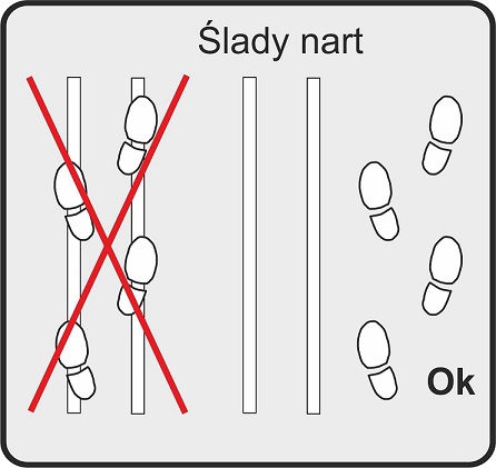 Pracownicy Parku apelujÄ… również do spacerowiczów: Nie rozdeptujcie Å›ladów nart! Niszczenie Å›ladu nie tylko utrudnia jazdÄ™ narciarzom, ale też może być przyczynÄ… poważnych wypadków! Niestety na trasach narciarskich w regionie wciąż czÄ™sto spotyka siÄ™ pieszych bezmyÅ›lnie rozdeptujÄ…cych Å›lady.