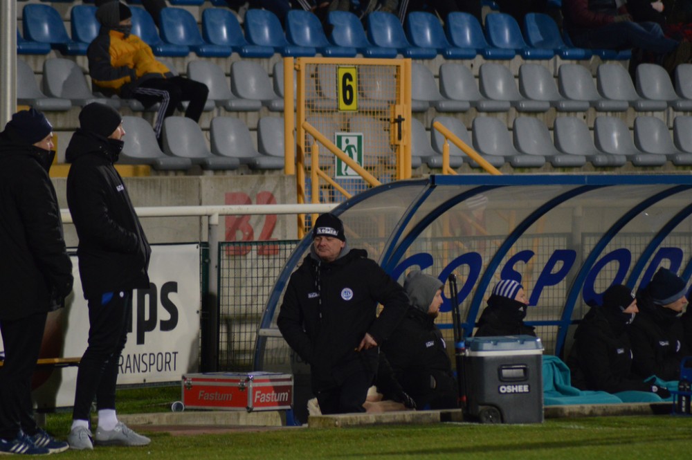 Przy polarnym wietrze temperatura odczuwalna na stadionie w Suwałkach wynosiła - 7 i tak ozięble wypadło pożegnanie Biało-Niebieskich ze swoimi kibicami.