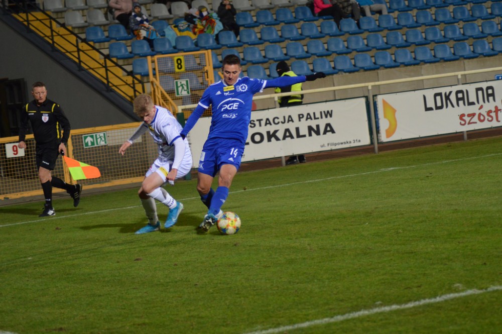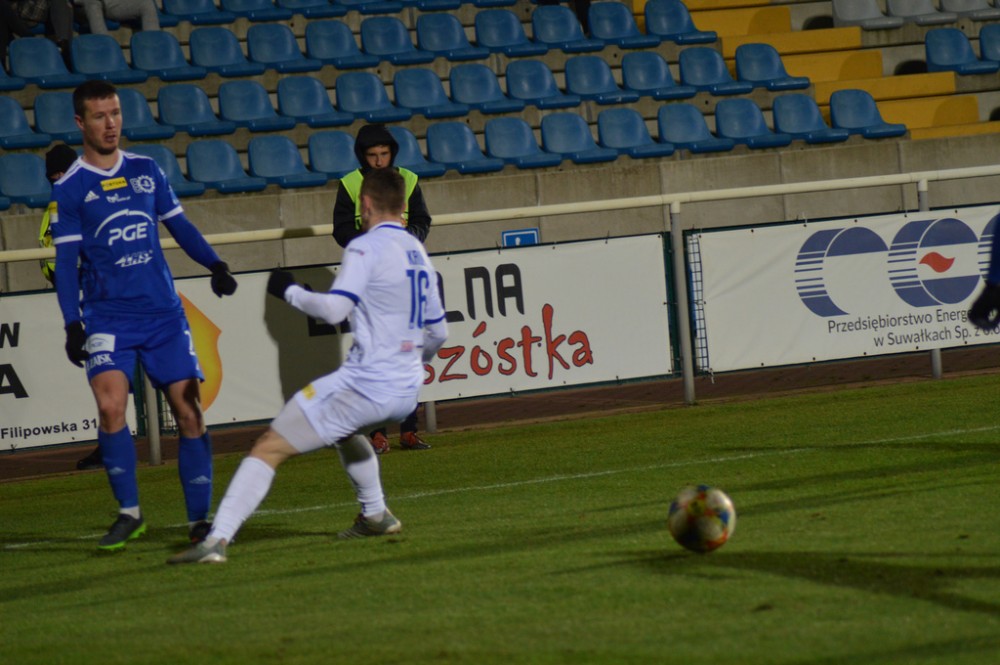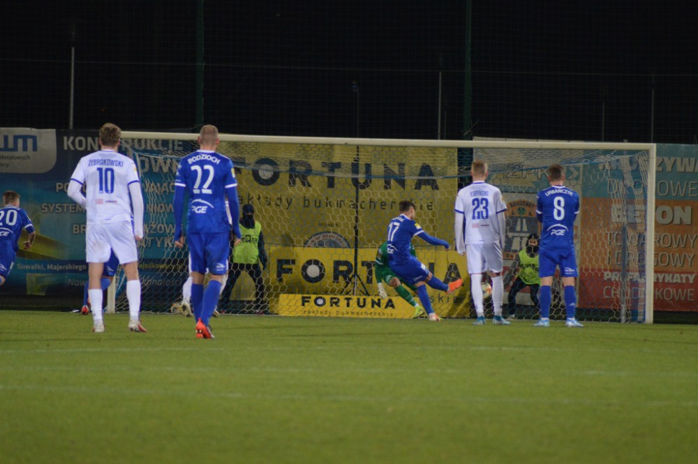 Michał Żebrakowski powinien był strzelić na 1:1 w drugiej połowie. Przyjął piłkę w polu karnym, przełożył ją na lewą nogę, ale jego strzał w kierunku dalszego słupka był minimalnie niecelny.