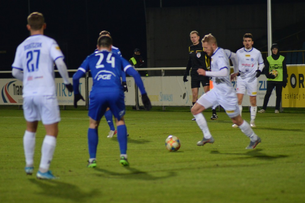 Wigry atakowały, wymieniały podania na połowie gości, ale nie dochodziły do sytuacji strzeleckich.