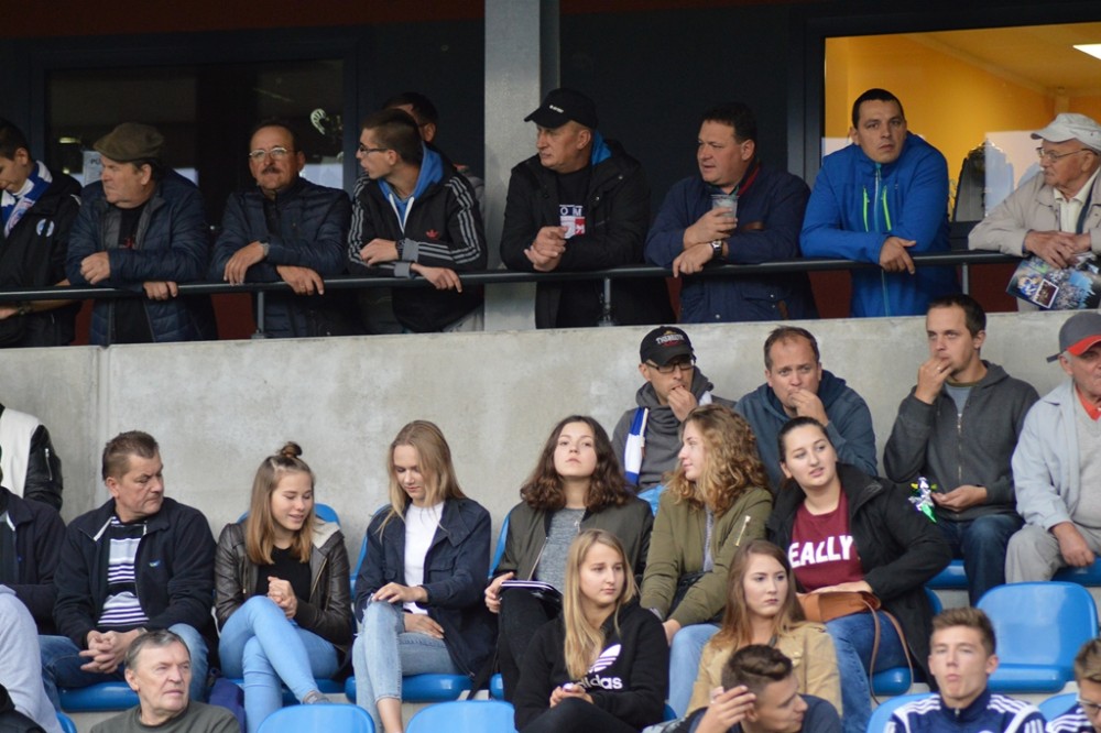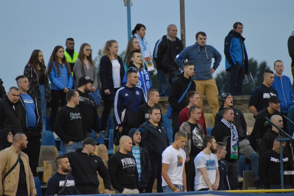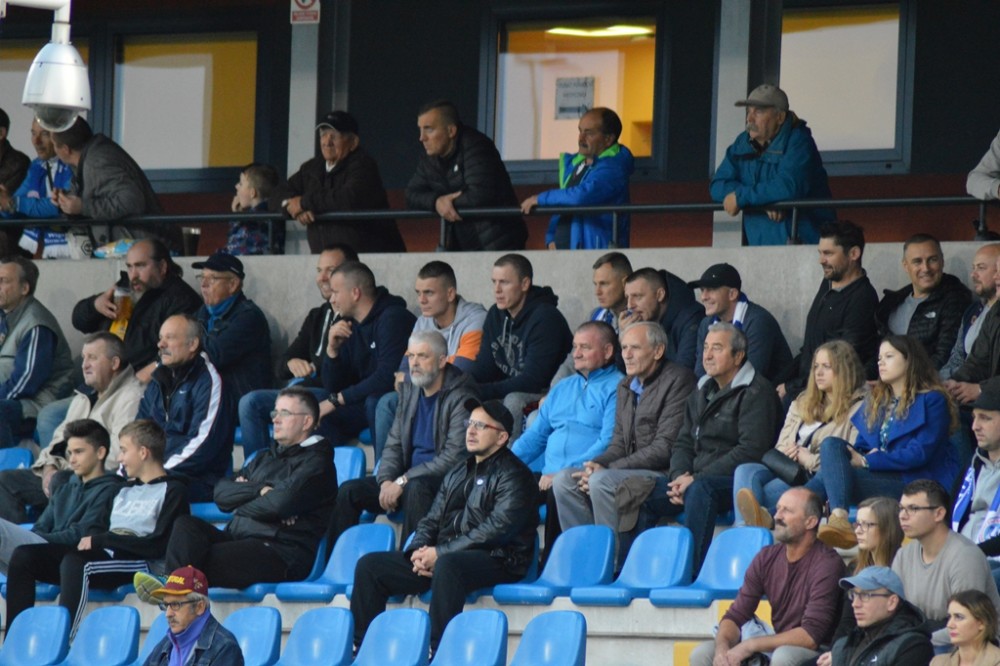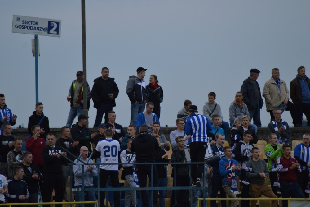 Od 35 minuty Biało-Niebiescy przycisnęli jeszcze bardziej, ale atakami środkiem i lewą stroną nie potrafili nic wskórać. Kibice z okrytej trybuny krzyknęli do słabo spisującego się na prawej flance pomocnika: „Gąska pokaż się do gry” i Damian niemal natychmiast pokazał, co potrafi. Oszukał dwóch rywali i z 20 metrów huknął lewą nogą w samo okienko bramki gości. Chyba był to strzał życia pochodzącego z Warszawy 21-letniego piłkarza.