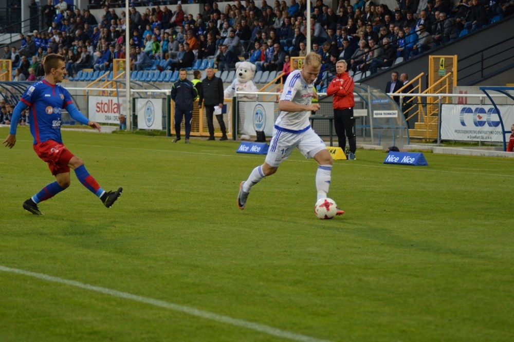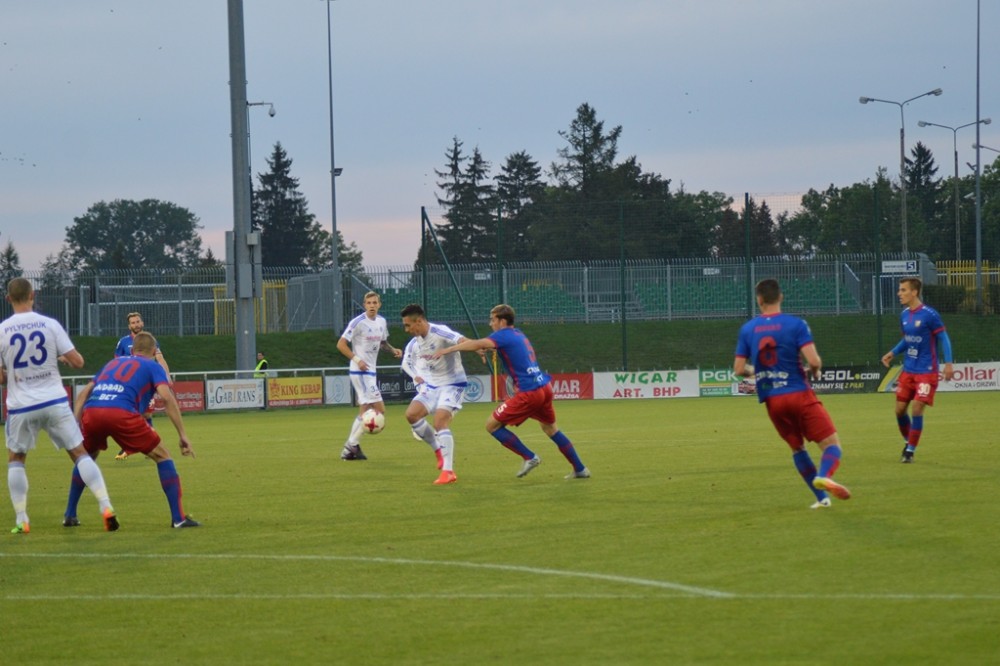 Dwa piękne, skuteczne strzały z dystansu przesądziły o drugiej z rzędu, a pierwszej w sezonie u siebie wygranej Biało-Niebieskich. Po zwycięstwie nad wiceliderem Wigry przynajmniej przez dzień są na bezpiecznym miejscu.