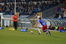 Trzy minuty później bramkarz gospoadzry uratował swój zespół przed utratą drugiej bramki i od tego momentu Biało-Niebiescy zaczęli z większym animuszem i agresją nacierać na przeciwnika. Coraz głośniej domagali się tego kibice, skandujący „Wigry grać…”.