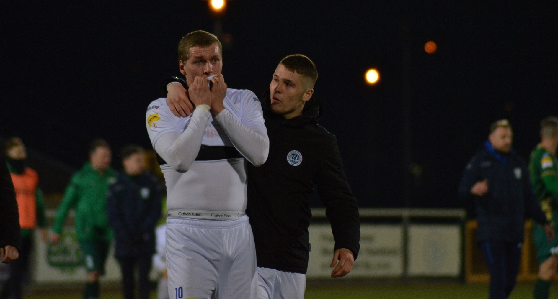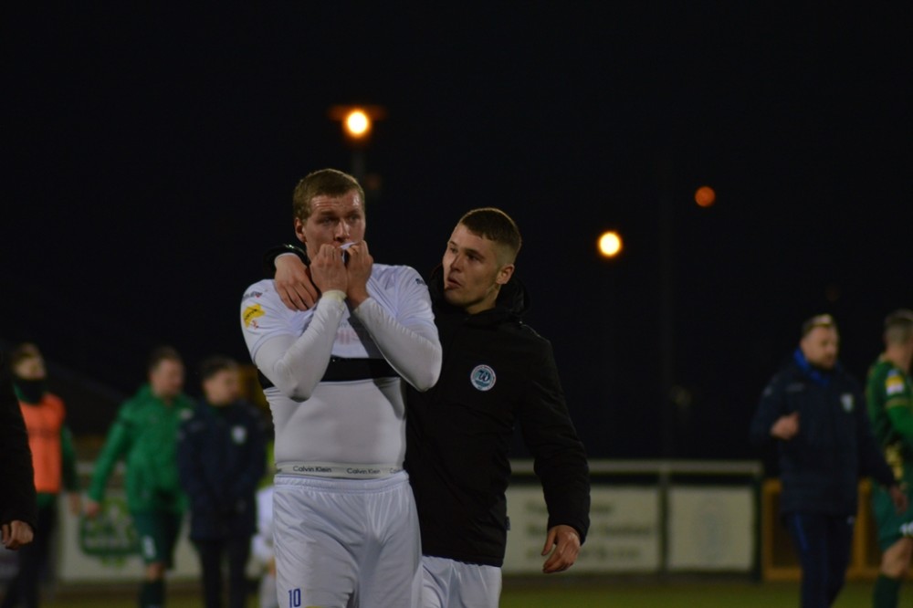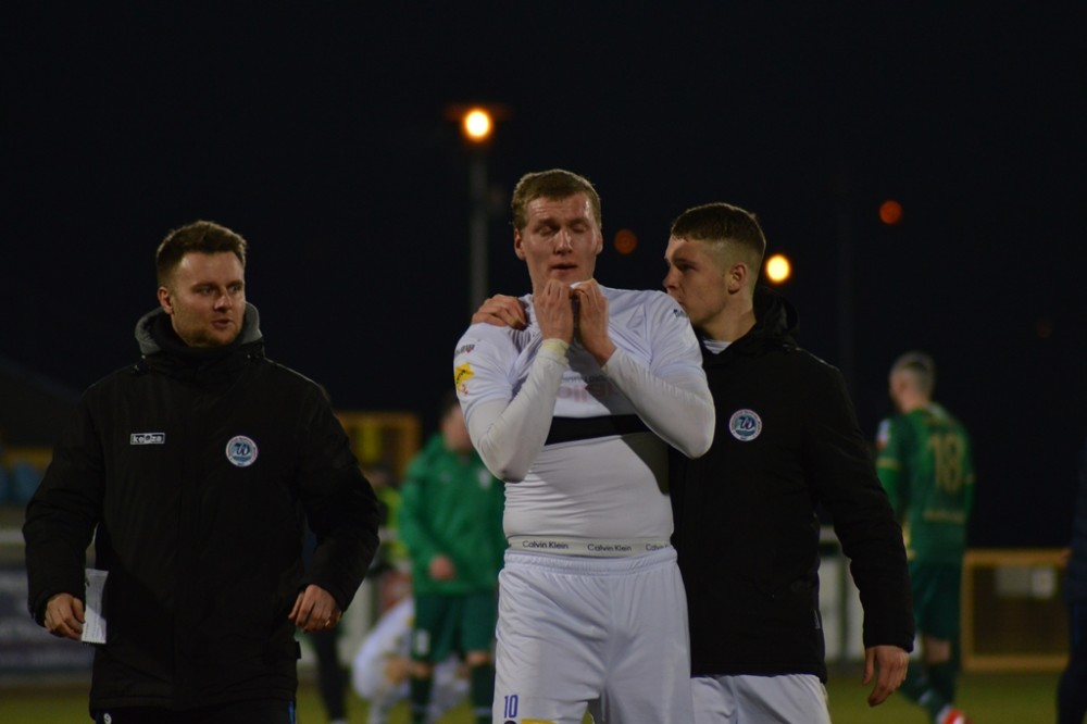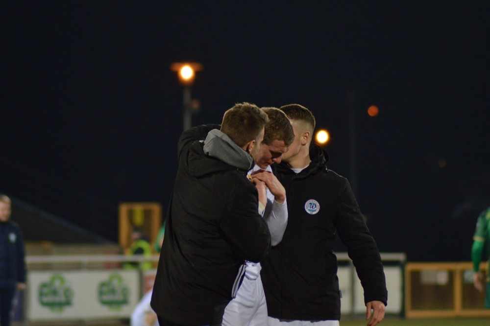 Po ostatnim gwizdku sędziego, Michał Żebrakowski zasłaniał oczy dłońmi i koszulką. Płaczącego kolegę pocieszali koledzy i szkoleniowiec.