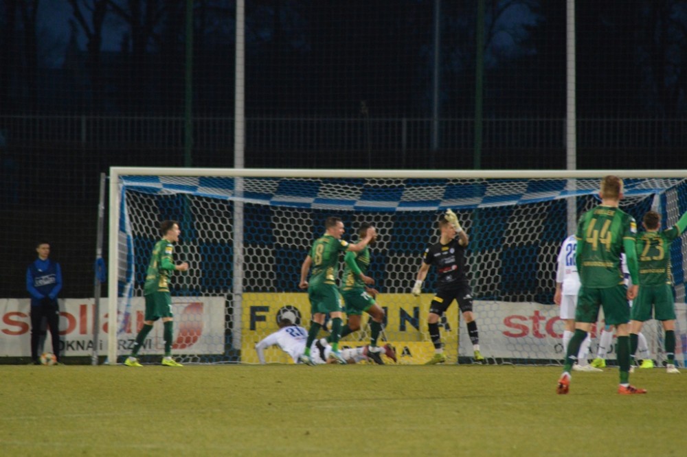 Niewykorzystana 200-procentowa sytuacja zemściła się już cztery minuty później. Goście wyszli z kontrą, zagrali od swojej lewej strony po obwodzie, zza 16 metrów przymierzył Sebastian Kamiński, któryś z naszych pomocników trącił jeszcze piłkę i wpadła ona do siatki obok zdezorientowanego Jana Balawejdera, który zastąpił między słupkami Dominika Kąkolewskiego.