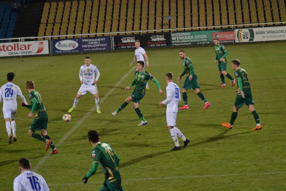 Tuż przed przerwą słupek bramki Wigier z daleka obił Maciej Kona, a po zmianie stron Wigry przepuściły 10-minutowy szturm. Niestety, do podania Cezarego Sauczka odrobinę spóźnił się Adam Najem, a po dokładnym zagraniu Konrada Matuszewskiego na środek pola karnego fatalnie skiksował Kacper Wełniak, który nie trafił w piłkę.