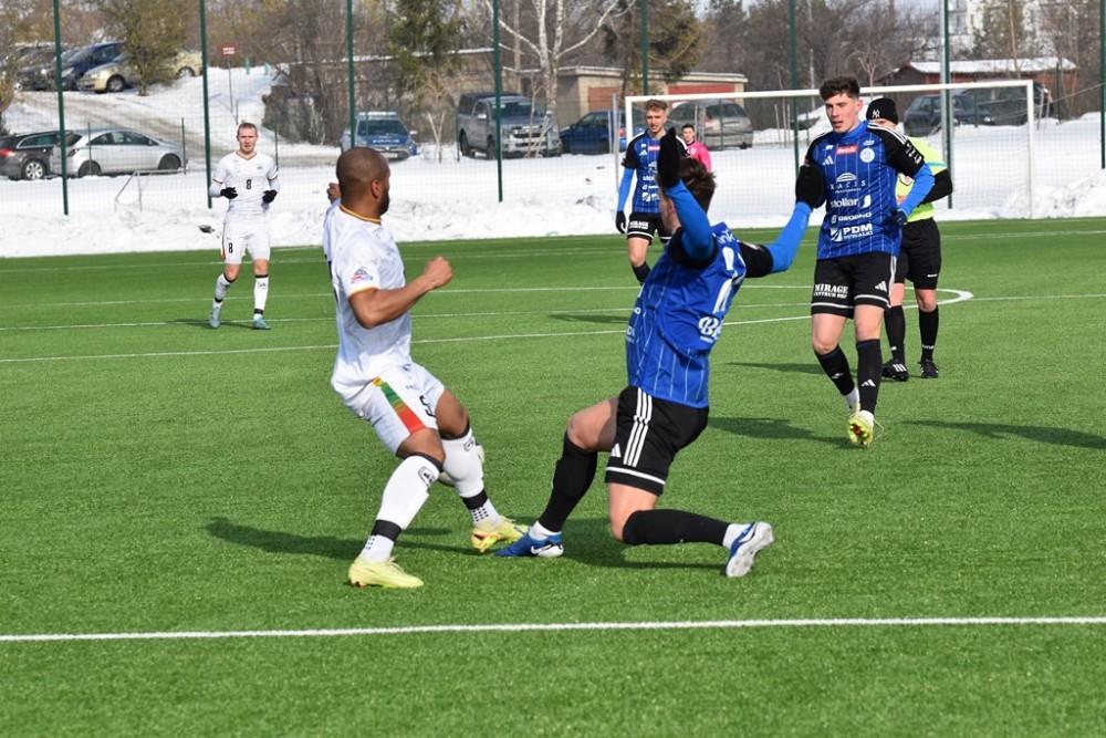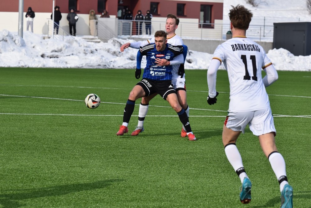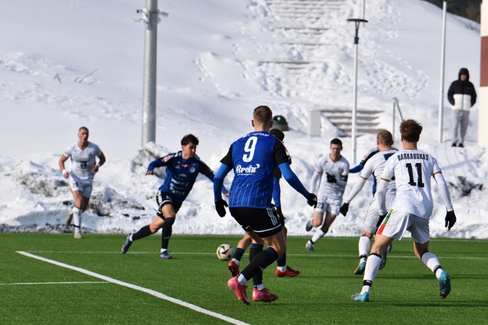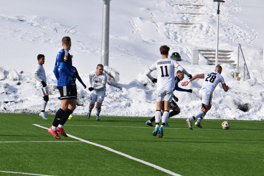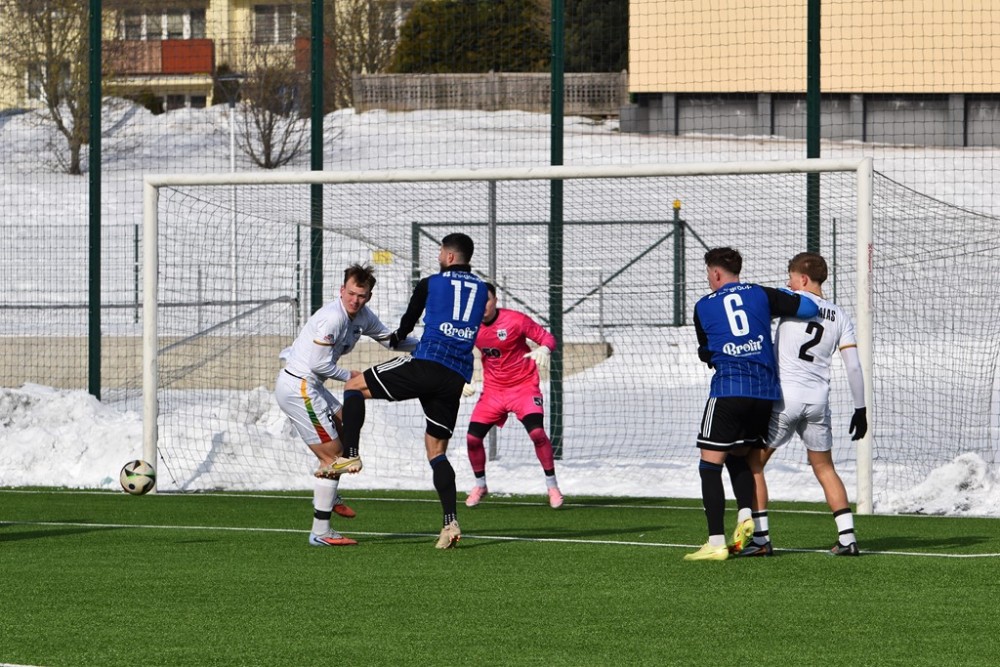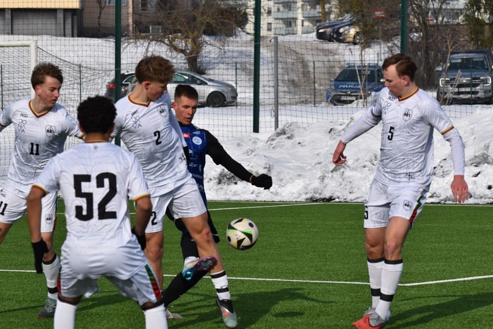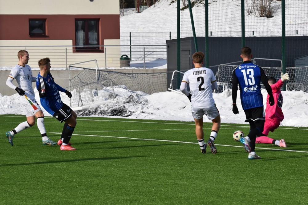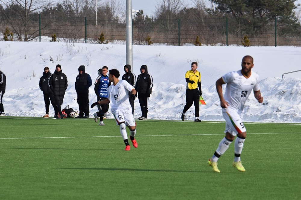 Na pierwszy ogień, przy słonecznej ale bardzo wietrznej pogodzie poszła ekipa z Jonavy, grająca w 1. Lidze litewskiej, czyli na drugim poziomie rozgrywkowym. Przeciwko niej Wigry wyszły w najsilniejszym zestawieniu, chociaż Arkadiusz Szczerbowski podkreśla, że walka o miejsce wyjściowym składzie trwa non-stop.