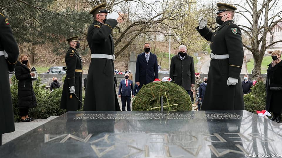 Premier RP Mateusz Morawiecki złożył kwiaty w kaplicy powstańców styczniowych i w Mauzoleum Matki i Serca Syna na Cmentarzu na Rossie. Premierowi towarzyszył Minister Obrony Republiki Litewskiej Arvydas Anušauskas.