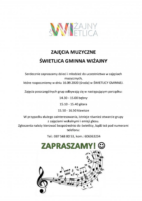 Dla każdego coś dobrego. Bęben, gitara, śpiew czy klawisze? Świetlica Gminna w Wiżajnach zaprasza na zajęcia muzyczne.