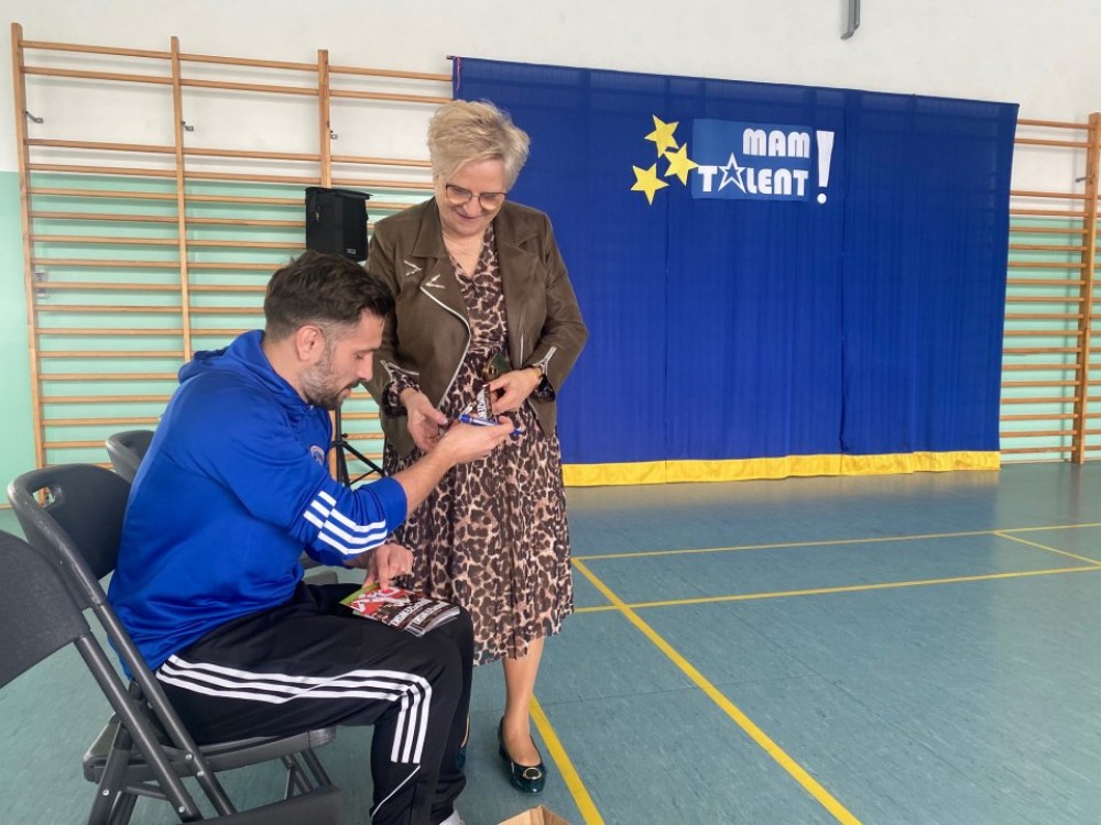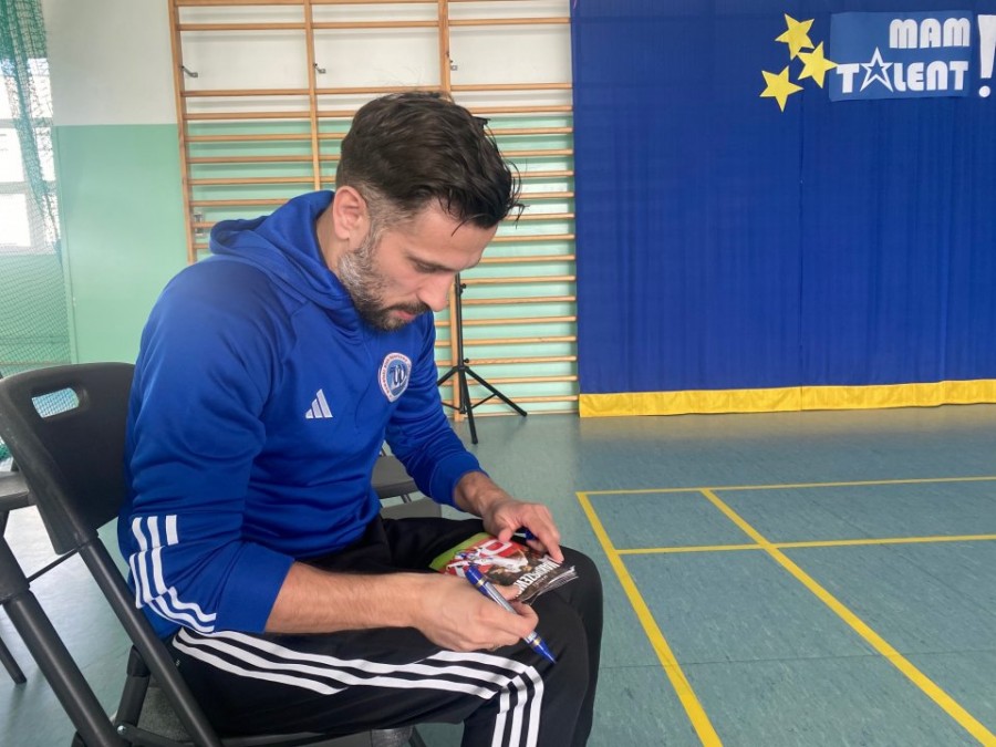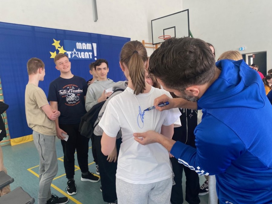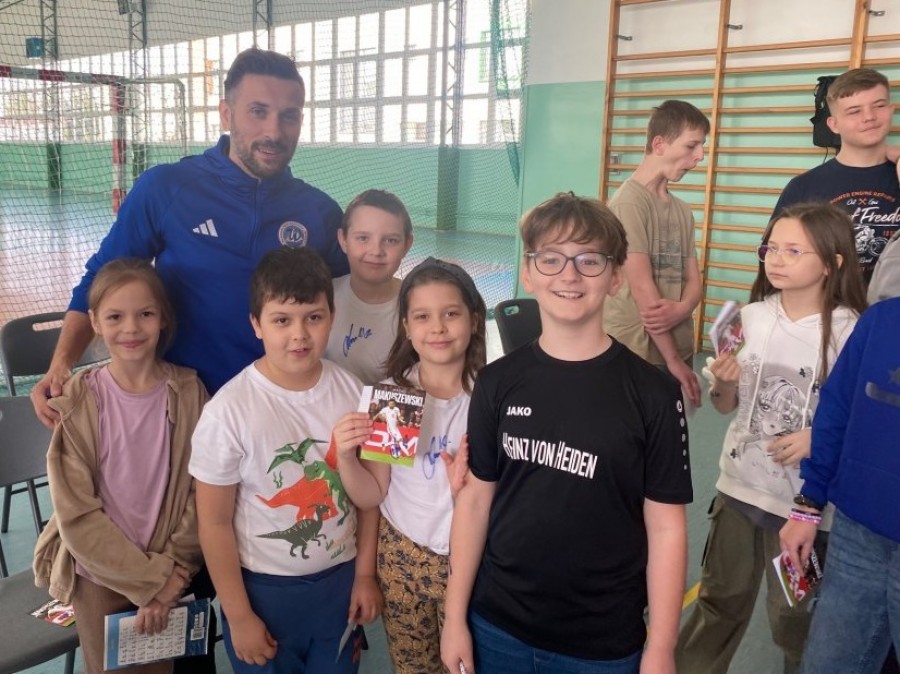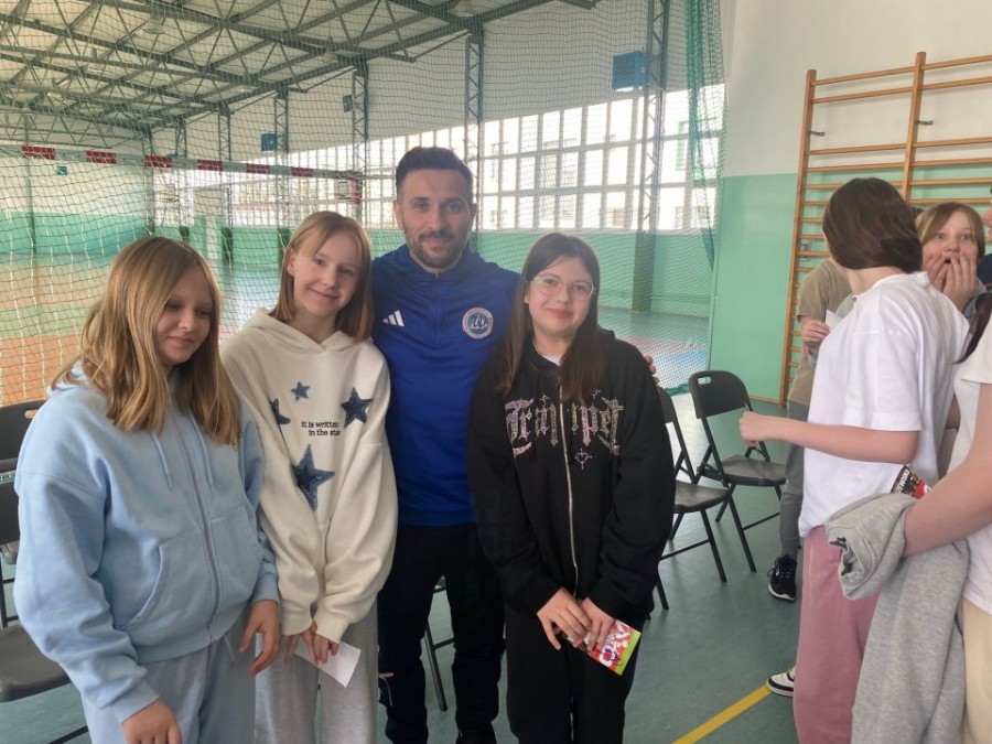 Podczas spotkania pochodzący ze Szczuczyna sportowiec, który występował m.in. w UKS SMS Łódź, Wigrach, Jagiellonii Białystok, Tereku Grozny, Lechii Gdańsk, Vitorii Setubal, Lechu Poznań opowiedział o swojej karierze, codziennej pracy nad formą oraz o wartościach, jakie niesie ze sobą sport. Nie zabrakło również czasu na pytania uczniów, autografy i wspólne zdjęcia.