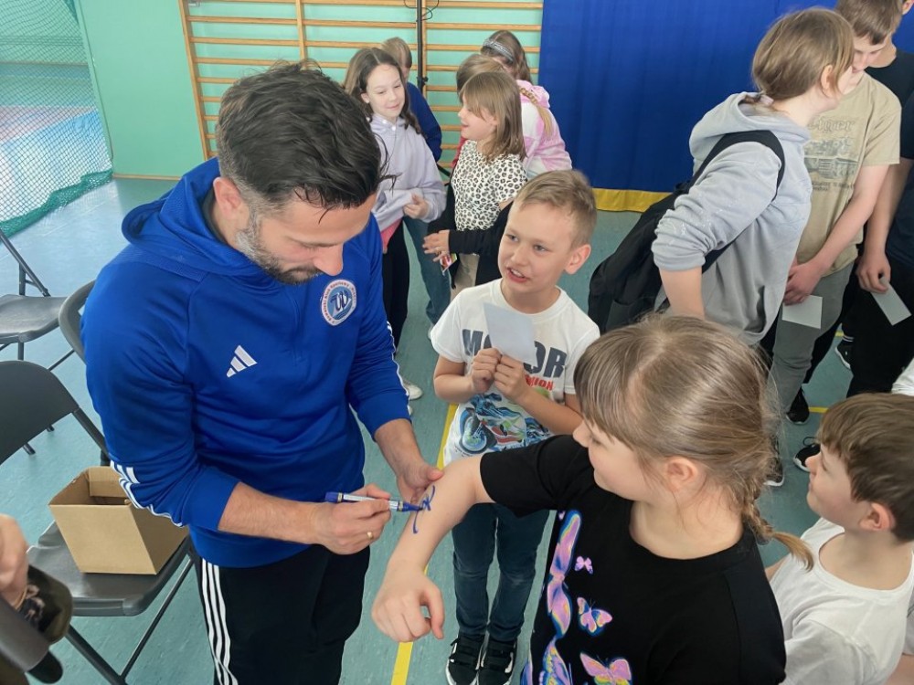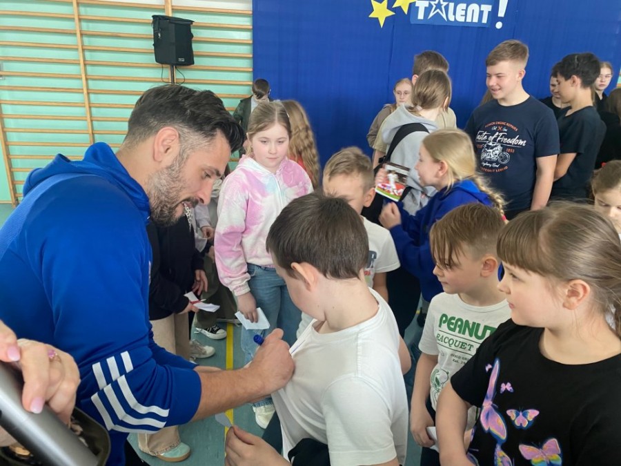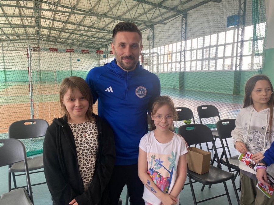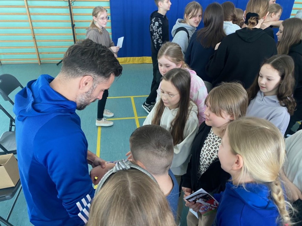 Uczniowie klas I–VIII Szkoły Podstawowej w Wiżajnach mieli wyjątkową okazję spotkać się z Maciejem Makuszewskim - znanym piłkarzem, pięciokrotnym reprezentantem Polski, grającym dyrektorem sportowym Wigier Suwałki.