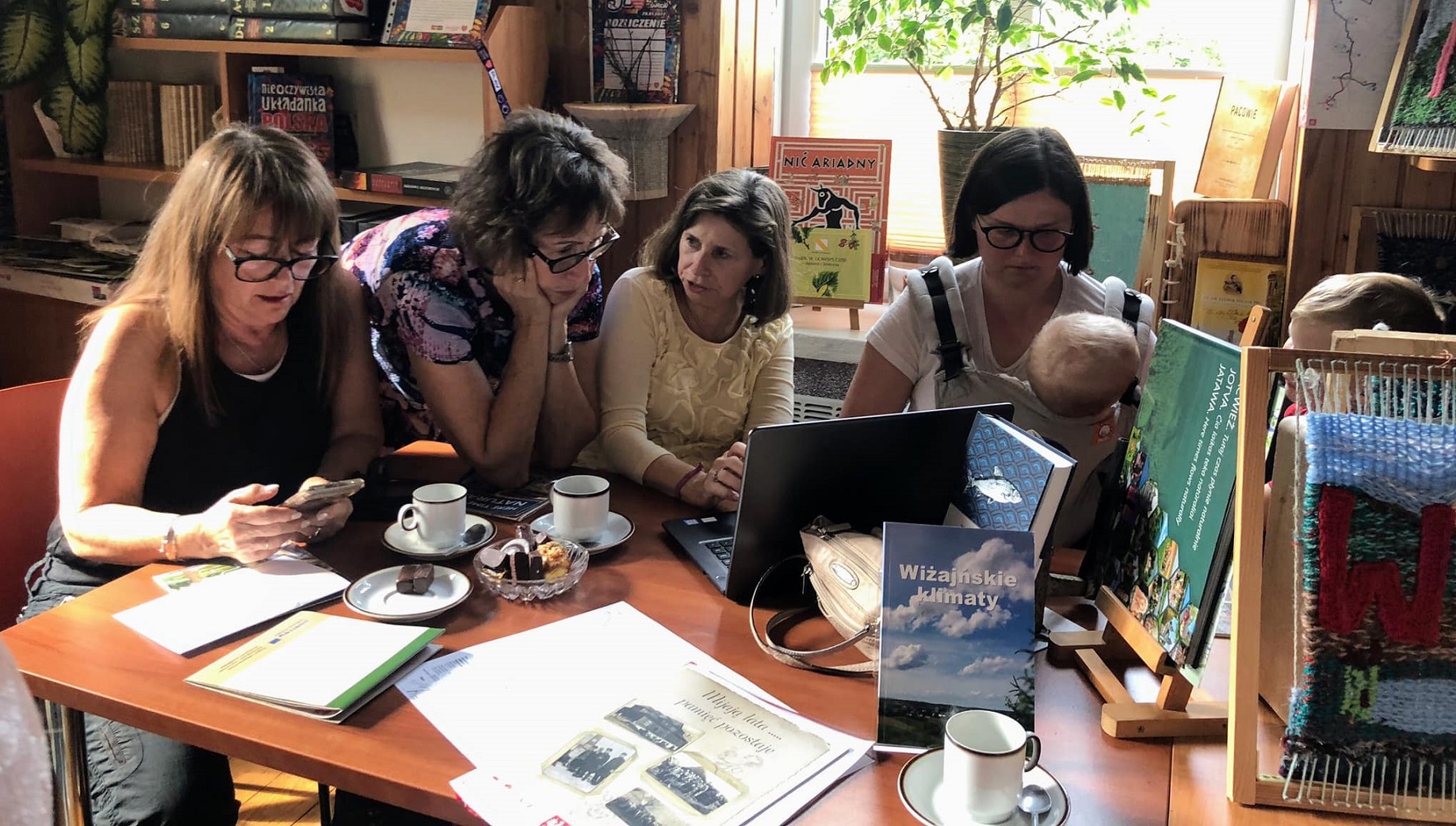 W Bibliotece Gminnej pokazano im przedwojennÄ… mapÄ™ Wiżajn z wieloma zaznaczonymi domami ówczesnych mieszkaÅ„ców oraz materiaÅ‚y powstaÅ‚e z projektu gimnazjum "Minęły lata, ale pamięć pozostaÅ‚a", realizowanego przez Szkołę Dialogu w 2014 r.