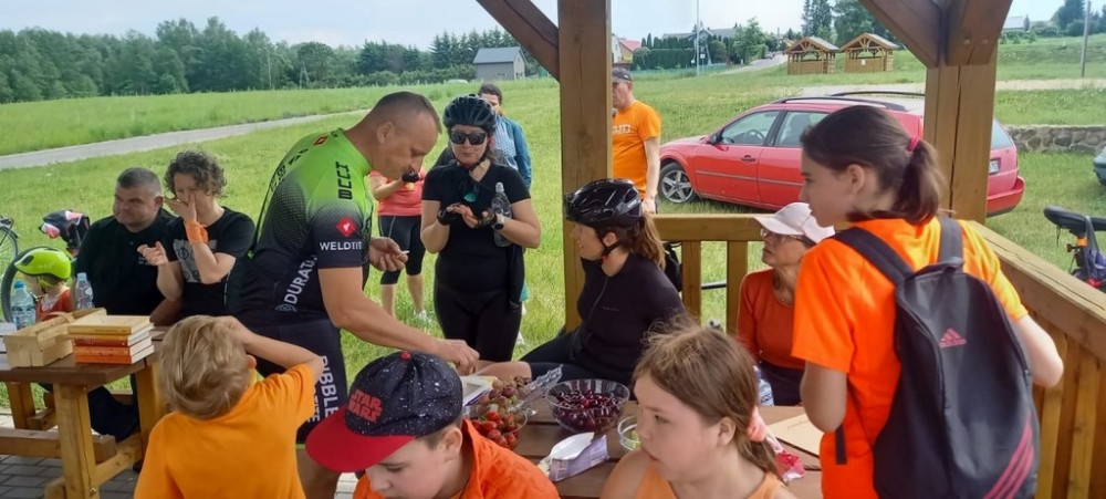 - Odjazdowy bibliotekarski rajd za nami. Deszcz i burza nie pokrzyżowały nam szyków, chociaż niewiele brakowało. Dziękujemy za liczną obecność i udział w naszym sztandarowym już wydarzeniu. Nowym osobom i tym, które z nami jeżdżą od lat. Dziękujemy panu Tadeuszowi, który podzielił się z nami wiadomościami o bezpiecznej i funkcjonalnej jeździe. Aktywność rowerowa i możliwość podziwiania naszych krajobrazów w zorganizowanej grupie to naprawdę przyjemna sprawa. Nie mogło nam też zbraknąć paru fajnych książek, z których wyczytaliśmy co trzeba adekwatnie do imprezy. Dziękujemy za wspólny poczęstunek, który ze smakiem zjedliśmy. Było naprawdę aktywnie, budująco i miło – napisała Biblioteka po imprezie.