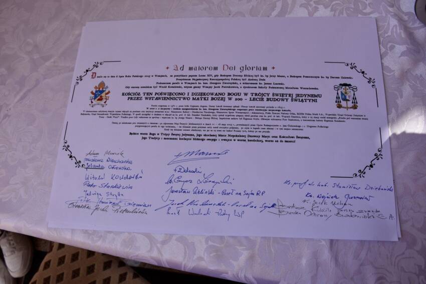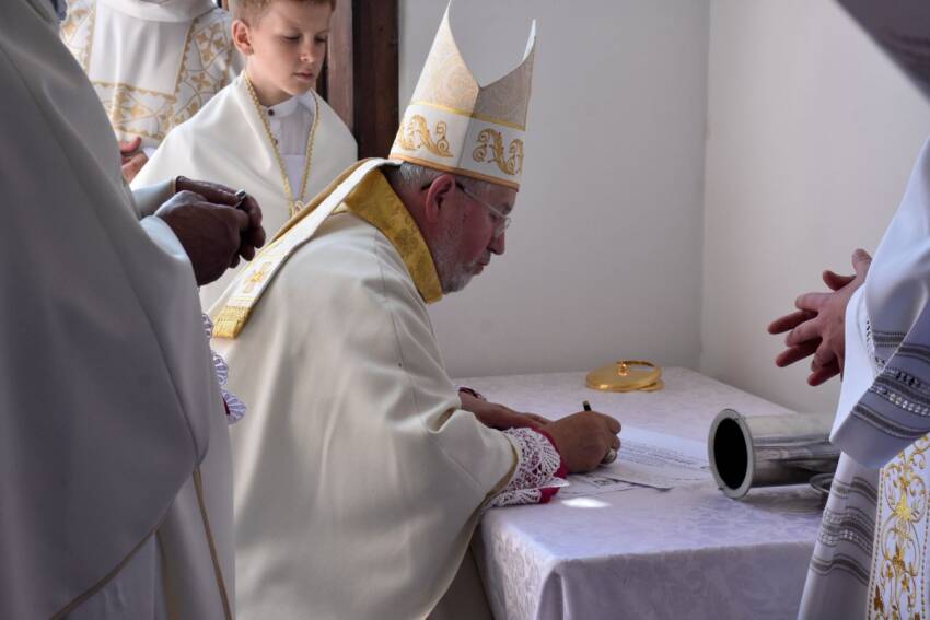 Ordynariusz eÅ‚cki wyraziÅ‚ w homilii wdziÄ™czność proboszczowi parafii oraz wszystkim, którzy przyczynili siÄ™ do renowacji: „Ta Å›wiÄ…tynia to dzieÅ‚o wiary kapÅ‚anów pracujÄ…cych tutaj przez 200 lat i obecnego waszego Proboszcza oraz wiary waszych praojców i waszej wiary a także jest to dzieÅ‚o waszych serc. PragnÄ™ wyrazić wdziÄ™czność kapÅ‚anom, którzy tutaj pracowali i pracujÄ…, obecnemu ksiÄ™dzu proboszczowi Grzegorzowi za posÅ‚ugÄ™ gÅ‚oszenia sÅ‚owa Bożego, posÅ‚ugÄ™ sakramentalnÄ… oraz zaangażowania siÄ™ w remont tej Å›wiÄ…tyni i przygotowanie jej do poÅ›wiÄ™cenia, konsekracji. Wyrażam wdziÄ™czność caÅ‚ej wspólnocie parafialnej i darczyÅ„com za wasze modlitwy, waszÄ… wiarÄ™, wasze dary serc, wasze zaangażowanie w prace”.