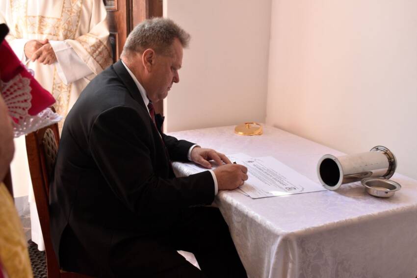 Proboszcz parafii, ks. kan. Grzegorz ZwierzyÅ„ski powitaÅ‚ zaproszonych goÅ›ci, wÅ›ród których znaleźli siÄ™ posÅ‚owie, ministrowie, przedstawiciele wÅ‚adz samorzÄ…dowych, przedstawiciele sÅ‚użb mundurowych oraz osoby, które przez ostatnie 6 lat wspieraÅ‚y remont koÅ›cioÅ‚a na różnych pÅ‚aszczyznach.