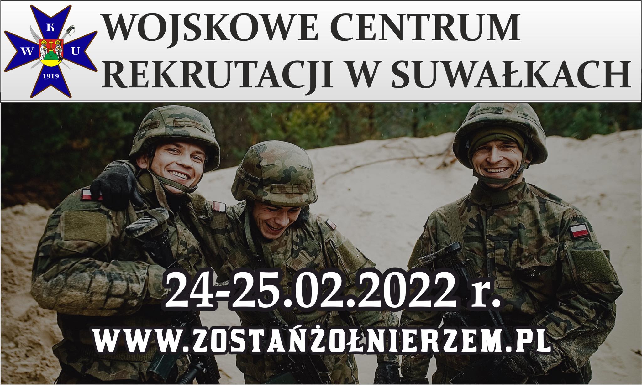 Mobilny Punkt Szczepień zostanie uruchomiony 24 lutego br. w godzinach od 9:00-13:00 w siedzibie WKU w Suwałkach podczas posiedzenia Wojskowego Centrum Rekrutacji przy ul. Wojska Polskiego 21a. Nie jest wymagana wcześniejsza rejestracja.