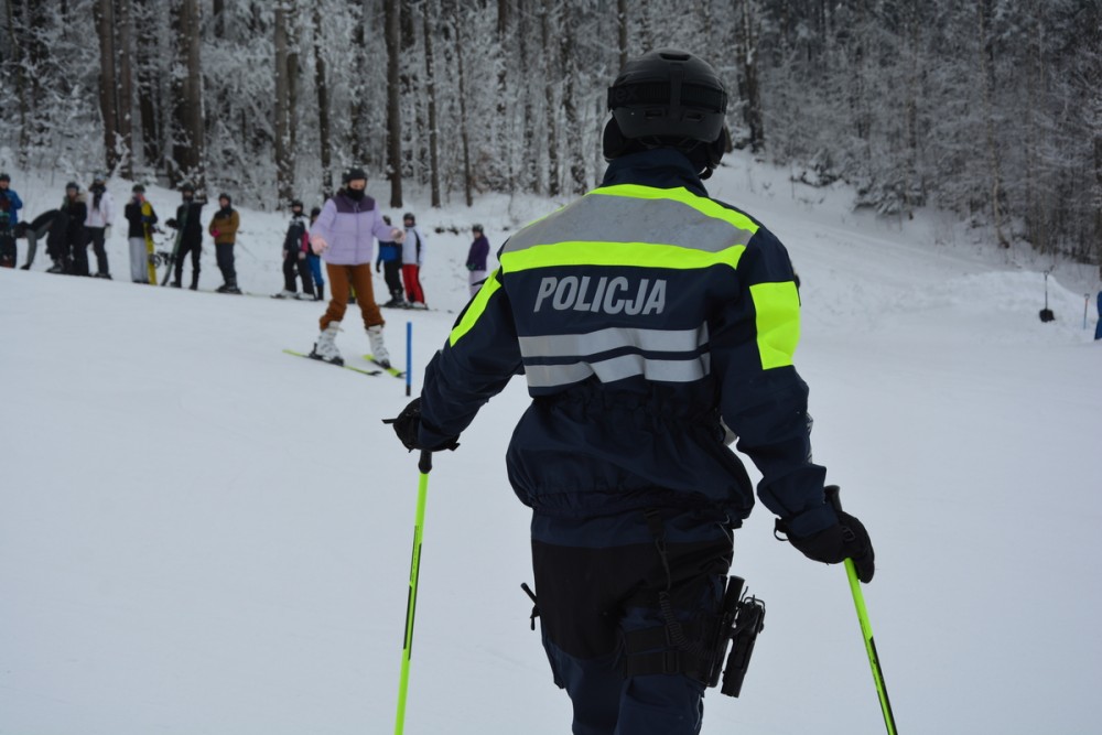 W działania zaangażowani byli również policjanci narciarze, którzy pełnią służbę na stoku i w jego rejonie. Służba w tym miejscu skupiona jest przede wszystkim na zwracaniu uwagi osobom, które zachowują się nieostrożnie i bez wyobraźni. Patrol narciarski reaguje, gdy dzieci i młodzież poniżej 16 roku życia, podczas jazdy na nartach czy deskach snowboardowych, nie posiadają kasku ochronnego. Mundurowi obserwują narciarzy i snowboardzistów pod kątem trzeźwości, by eliminować realne zagrożenie dla innych użytkowników stoku. W trakcie patrolu zwracają uwagę na sprzęt, który narciarze pozostawiają bez opieki, a także na kulturę na stoku i w kolejkach do wyciągu.