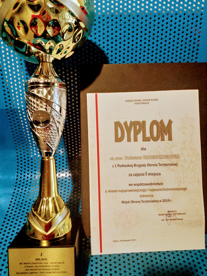 Tadeusz Walendykiewicz ma stopieÅ„ starszego szeregowego, na co dzieÅ„ jest żoÅ‚nierzem 12 Batalionu Lekkiej Piechoty 1 Podlaskiej Brygady WOT. Dorobek st. szer. Walendykiewicza to m.in. dwa zÅ‚ote medale w biegach przeÅ‚ajowych oraz dwa srebrne medale i dwa medale brÄ…zowe w biathlonie letnim. To już drugie, na szczeblu WOT, indywidualne wyróżnienie dla Terytorialsa z SuwaÅ‚k.