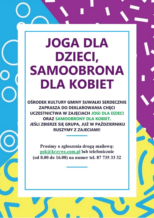 W poniedziałek, 14 września, rozpoczną się zajęcia w Ośrodku Kultury Gminy Suwałki, zawieszone z powodu pandemii koronawirusa. Chętni na pewno znajdą coś dla siebie, ponieważ Ośrodek zaprasza na zajęcia kulturalne i sportowe oraz językowe.