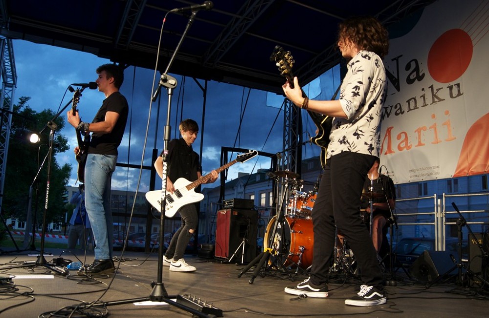 Także na żywo, o czym już opowiedzieliśmy wczoraj w fotoreportażu Marcela Kwiatkowskiego, na scenie w centrum Suwałk, na koncercie z cyklu "Na dywaniku u Marii - Muzyczne Konstelacje" Bartosz Gajewicz (perkusja), Tomek Kopecki (gitara rytmiczna, wokal prowadzący), Sebastian Szyperek (gitara basowa) i Wojciech Łabacz (gitara prowadząca) dali z siebie ile mogli, by usatysfakcjonować miejscową publikę i sympatyków, którzy przyjechali na ich występ nie tylko z sąsiednich miast.