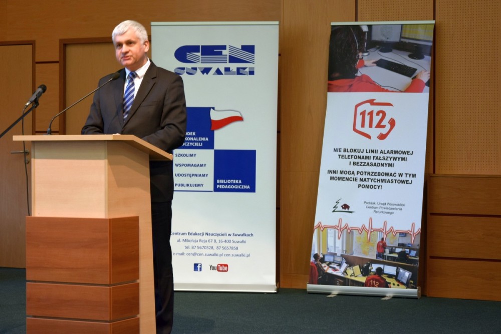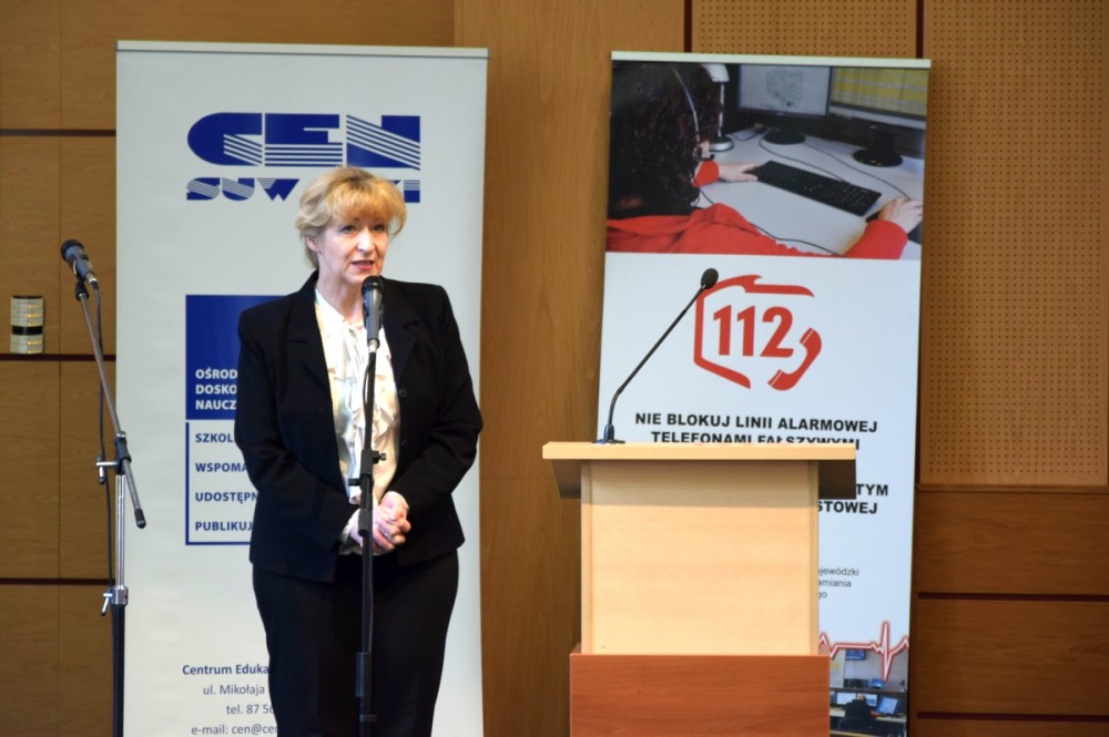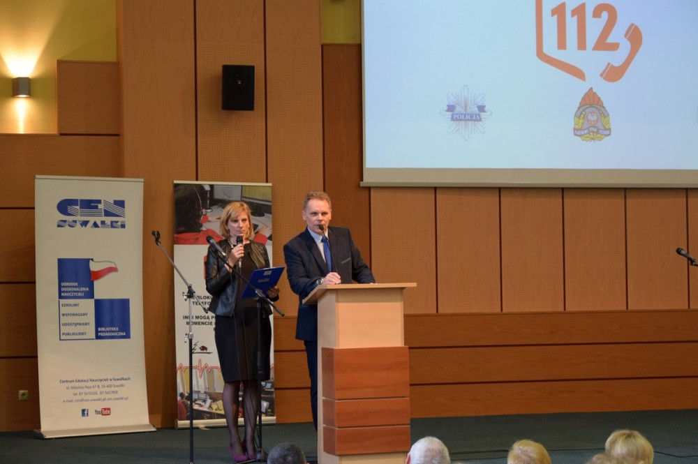 Wojewoda Podlaski pogratulował w swoim wystąpieniu aktywności uczniom, nauczycielom i szkołom. Zaapelował do uczestników o właściwe korzystanie z numeru alarmowego 112. Pani Lidia Kłoczko – dyrektor Centrum Edukacji Nauczycieli w Suwałkach złożyła serdeczne podziękowania uczniom i szkołom za liczny udział w konkursie. Pogratulowała nauczycielom i rodzicom laureatów.