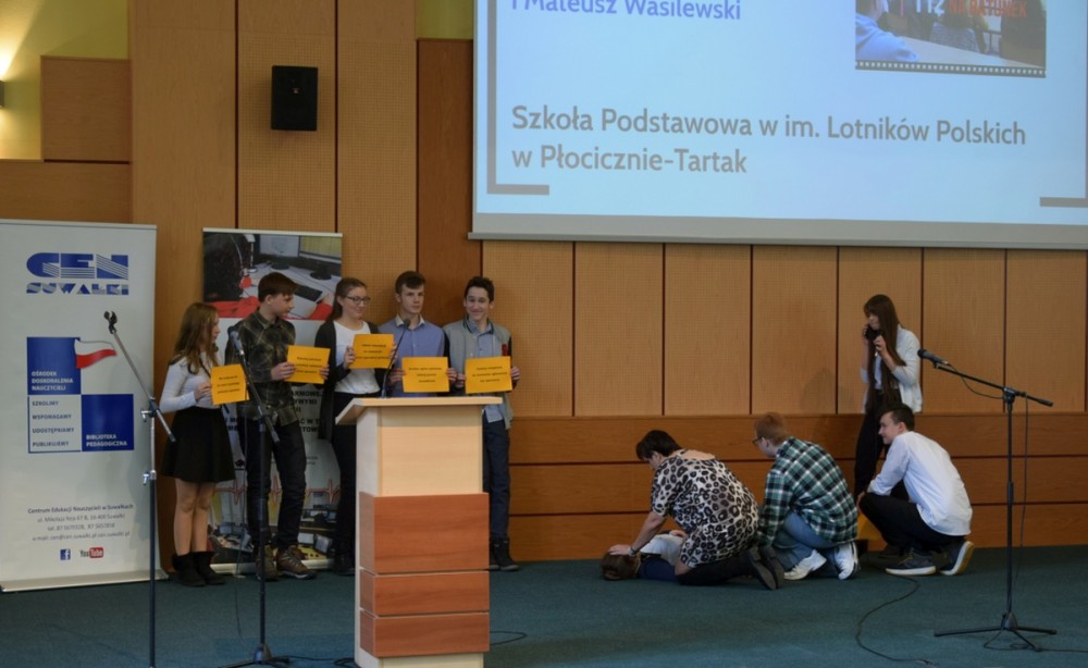 II miejsce zajęli uczniowie klasy VIII: Małgorzata Carewicz, Ilona Skorupska, Julia Romanowska i Mateusz Wasilewski, reprezentujący Szkołę Podstawową im. Lotników Polskich w Płocicznie-Tartak.