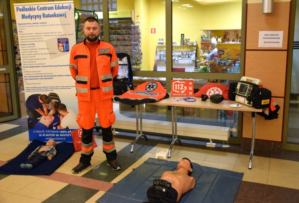 W holu przed salą konferencyjną można było obejrzeć wystawę konkursowych prac plastycznych oraz odwiedzić stoiska służb Ratownictwa Medycznego, Policji, Państwowej Straży Pożarnej i Centrum Powiadamiania Ratunkowego w Białymstoku.